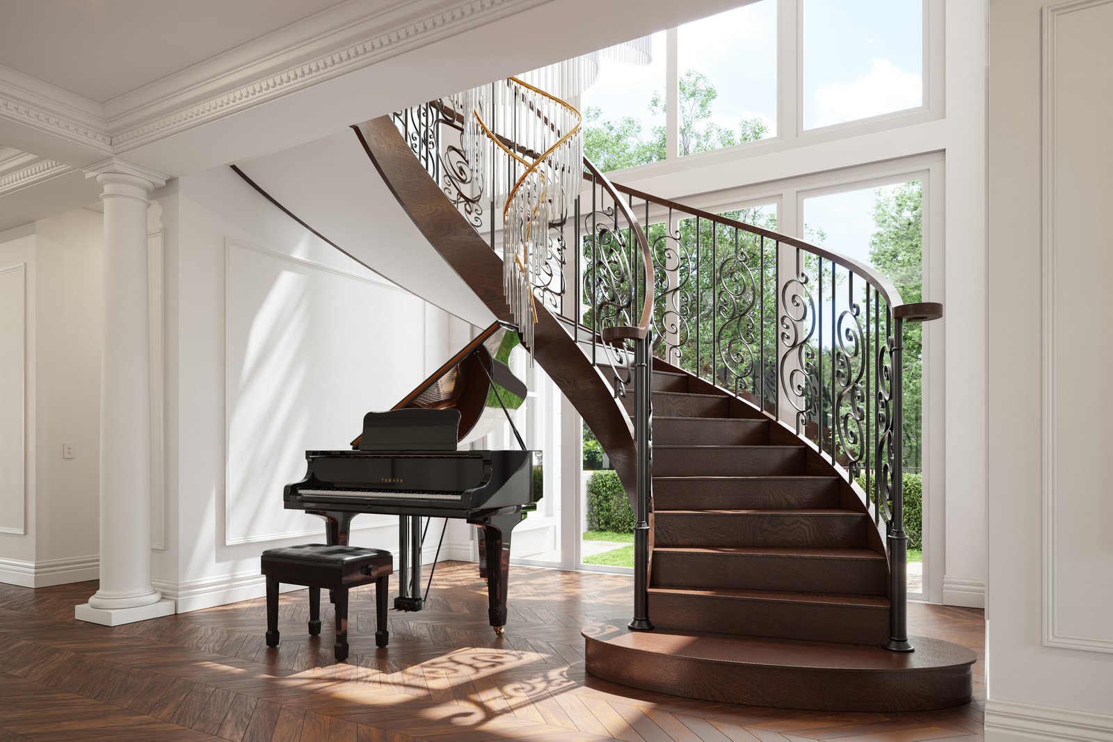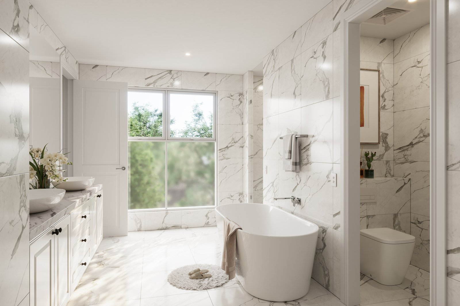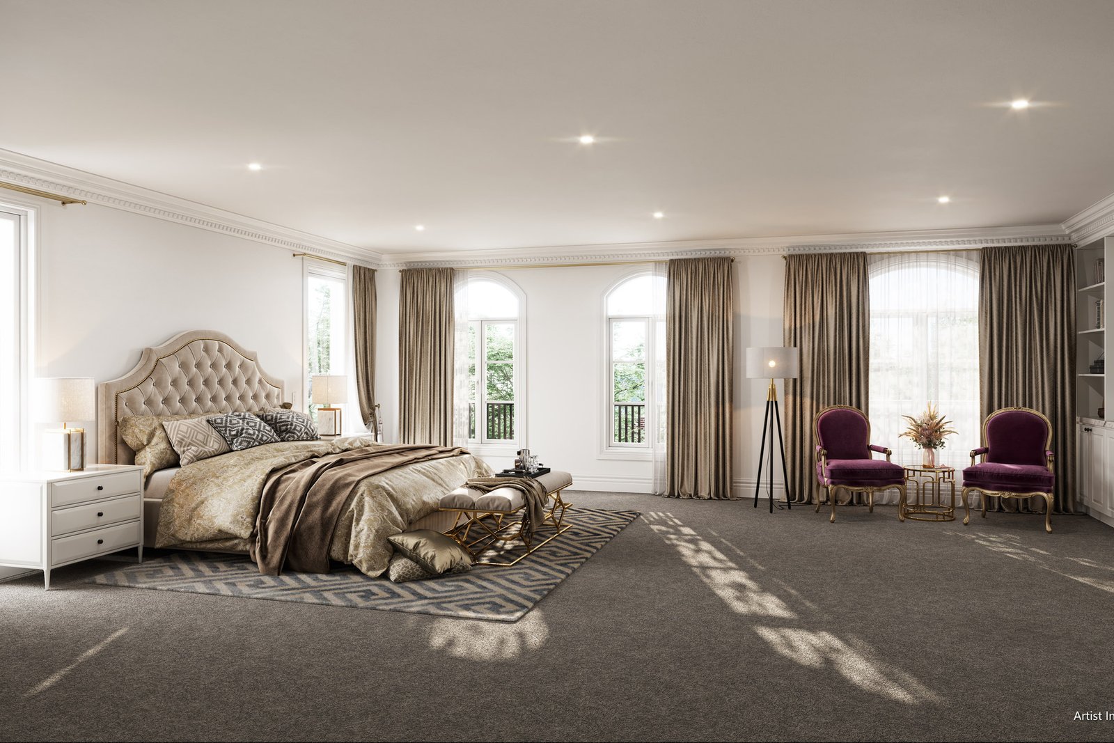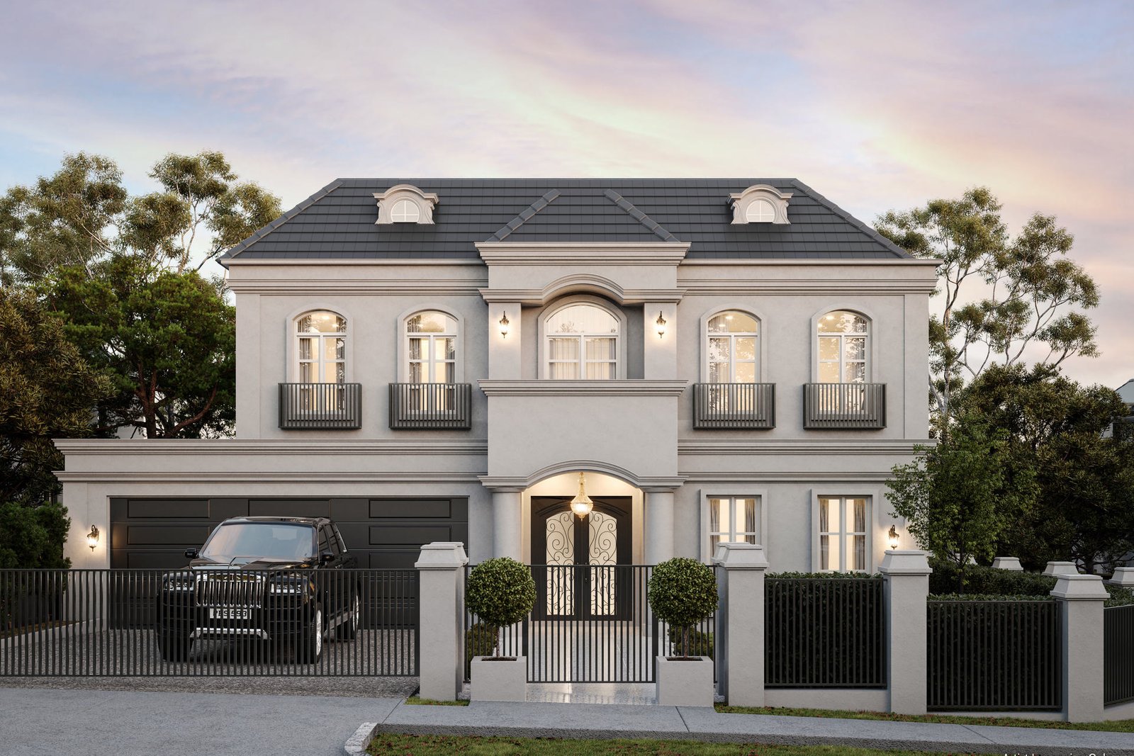 Luxury exudes throughout the interior design, showcasing classic French Provincial living. Decorative lines adorn the ceilings and wall skirting, while European oak and herringbone parquetry flooring enhance the ambiance.