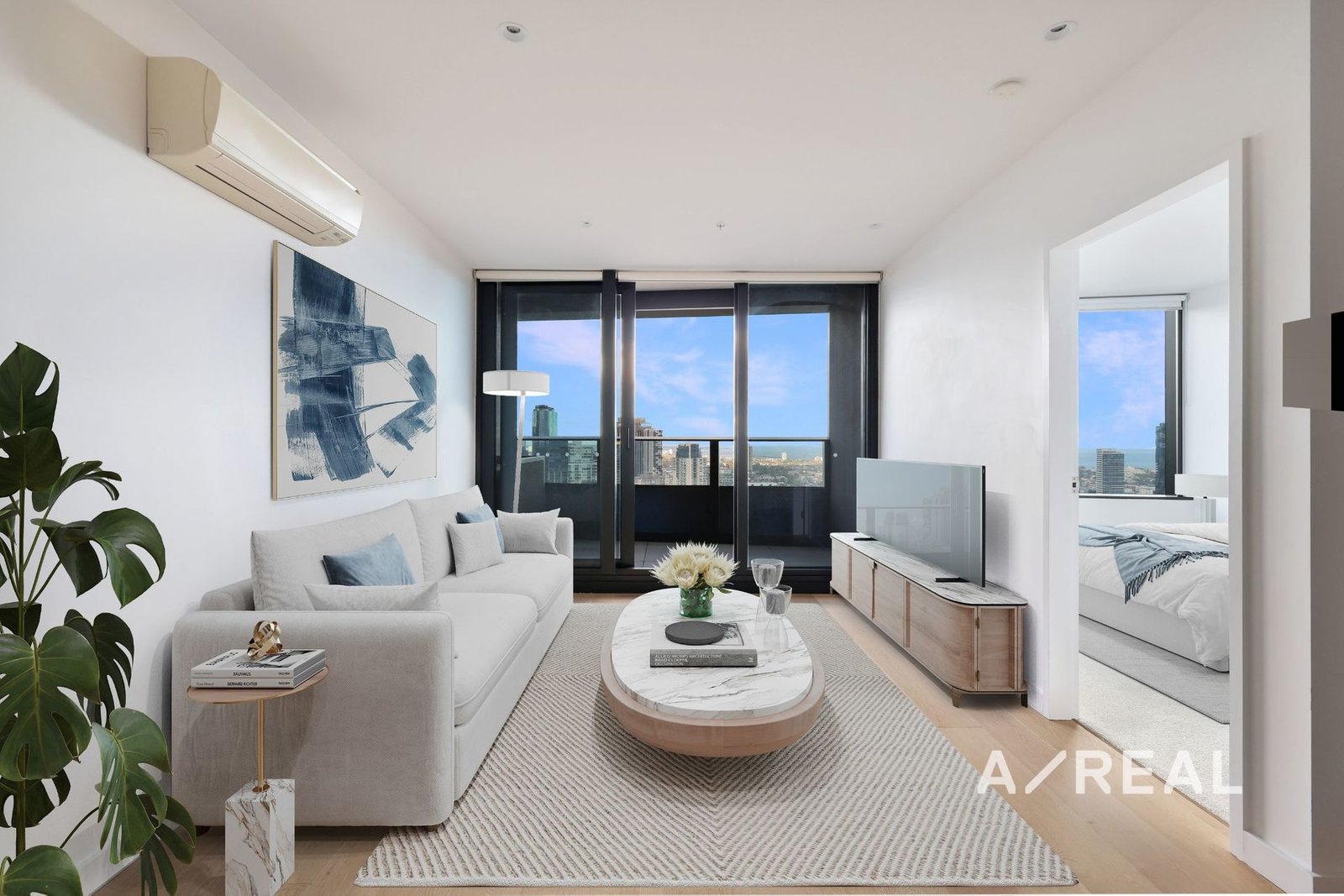 Bathed in natural light and enriched by the warmth of timber flooring, this contemporary residence showcases a thoughtfully designed open-plan layout that seamlessly integrates the living and dining areas, with a sleek, stone-topped kitchen. Full-height windows invite an abundance of sun, while offering an effortless connection to the entertaining balcony with the most breathtaking views.