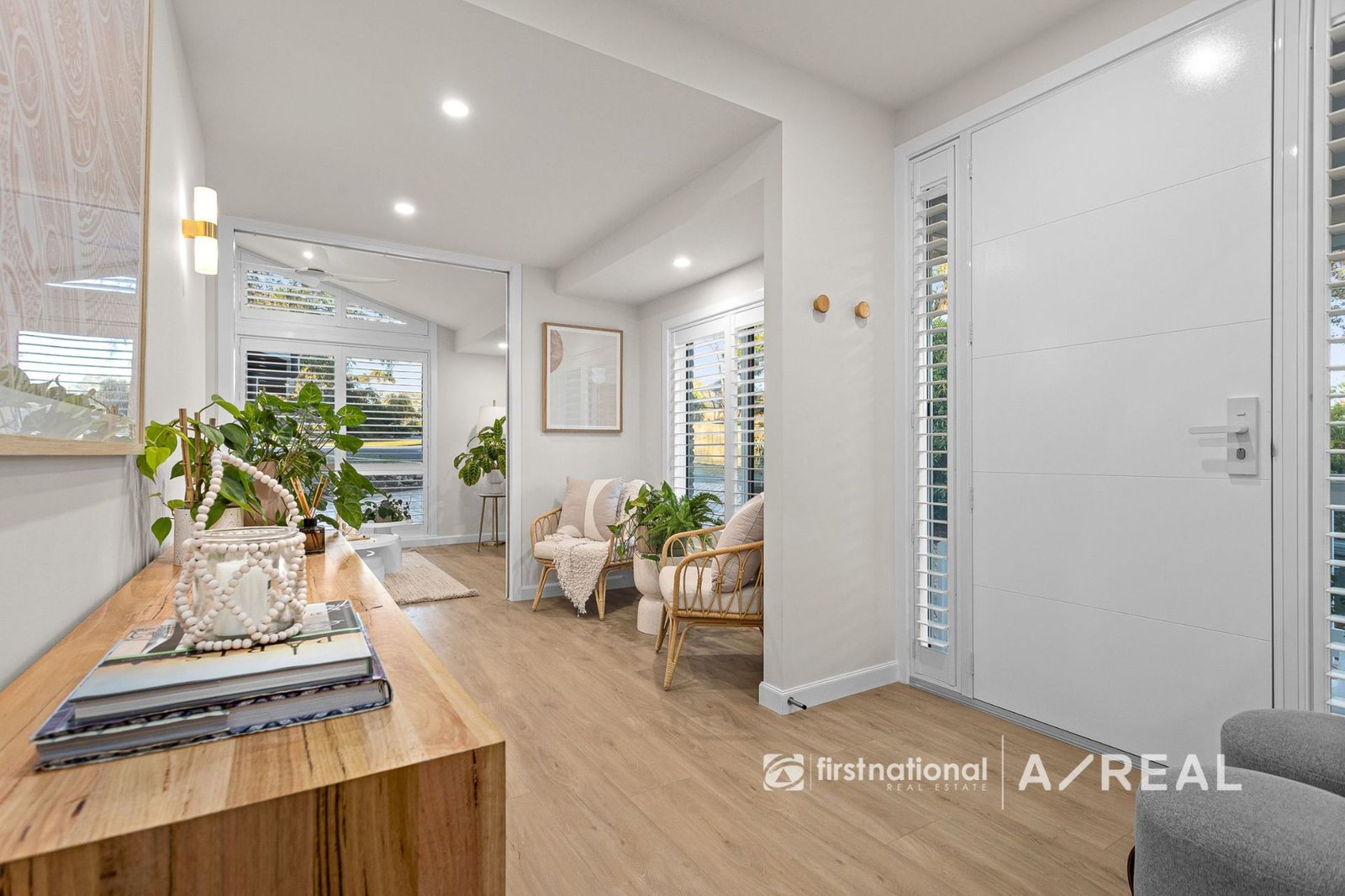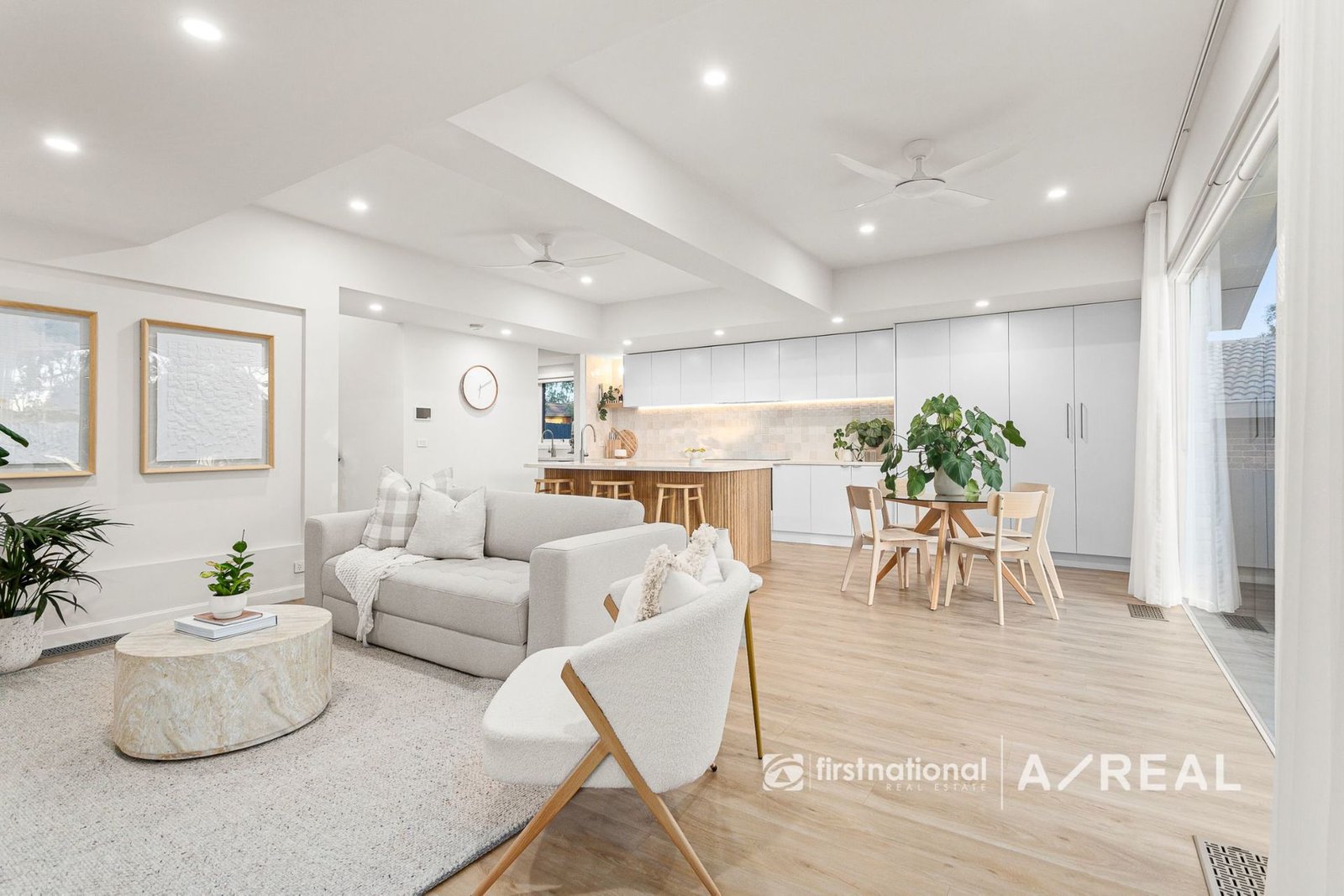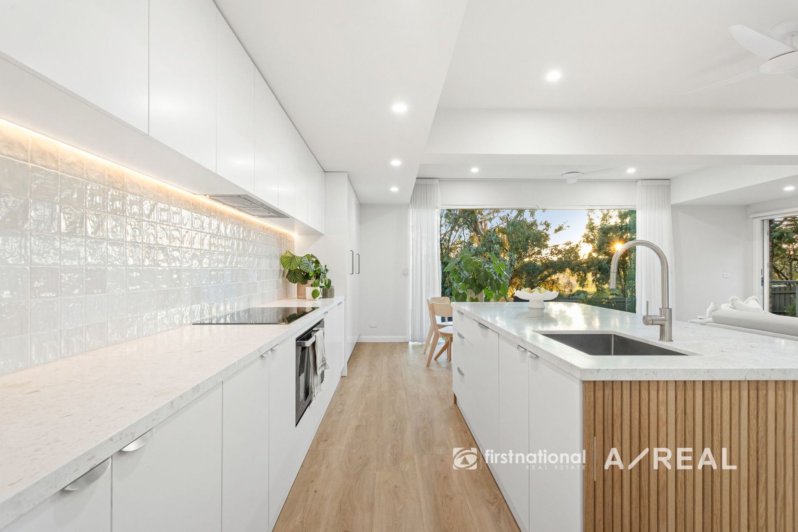 Enjoy year-round comfort with ducted floor heating and cooling, underfloor heating in both the ensuite and main bathroom, and remote-controlled fans throughout. Premium double-glazed windows and sliding doors enhance insulation and tranquility, while architectural comfort-glass windows and solid timber internal doors underscore the home's superior design. Storage and technology blend seamlessly, with a cleverly concealed central AV/storage cupboard ensuring no visible cabling or wires. Stylish cavity sliding doors with click-release mechanisms further contribute to the home's clean and modern aesthetic. High ceilings with designer features, downlights throughout, and a spacious double linen press add both style and functionality.