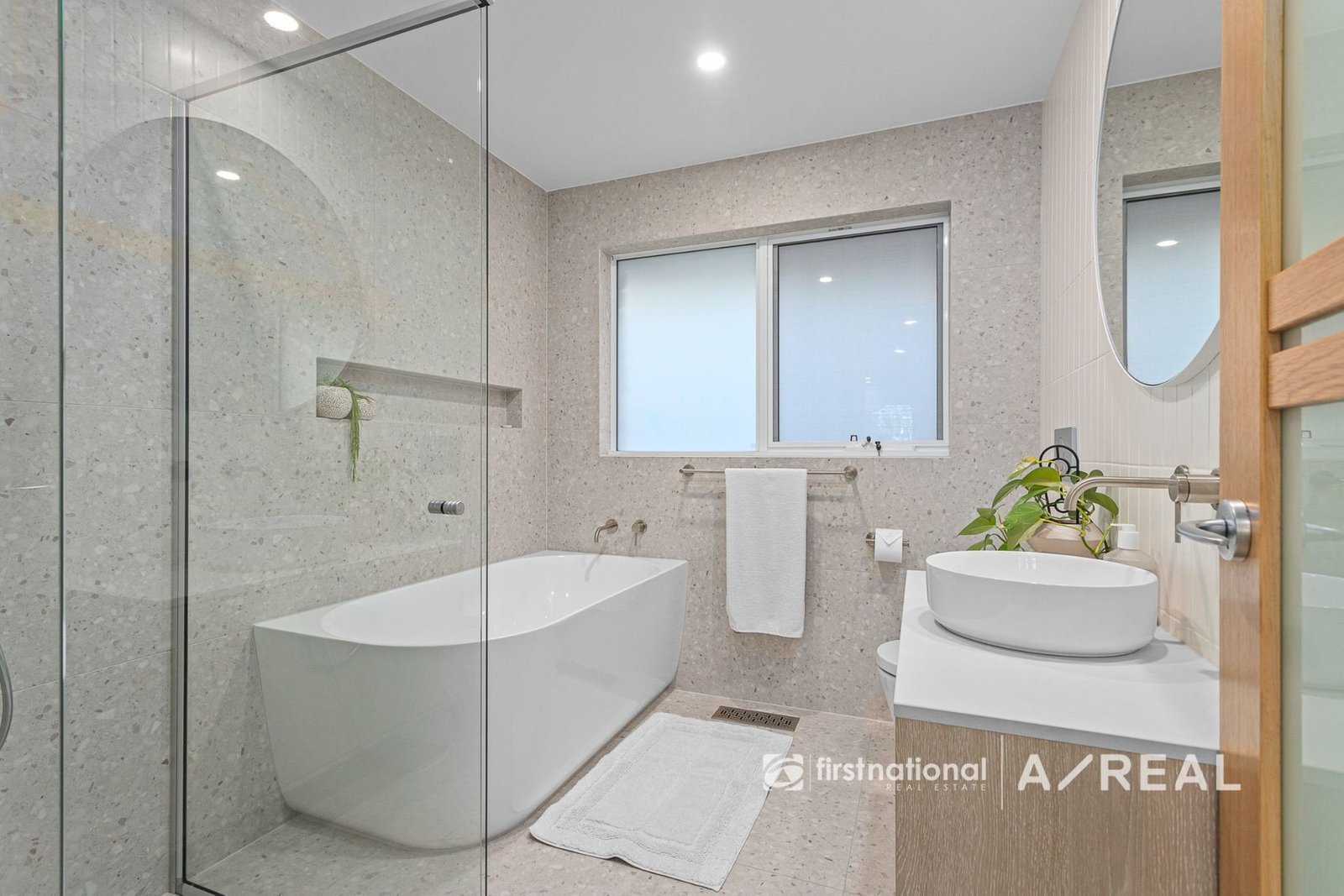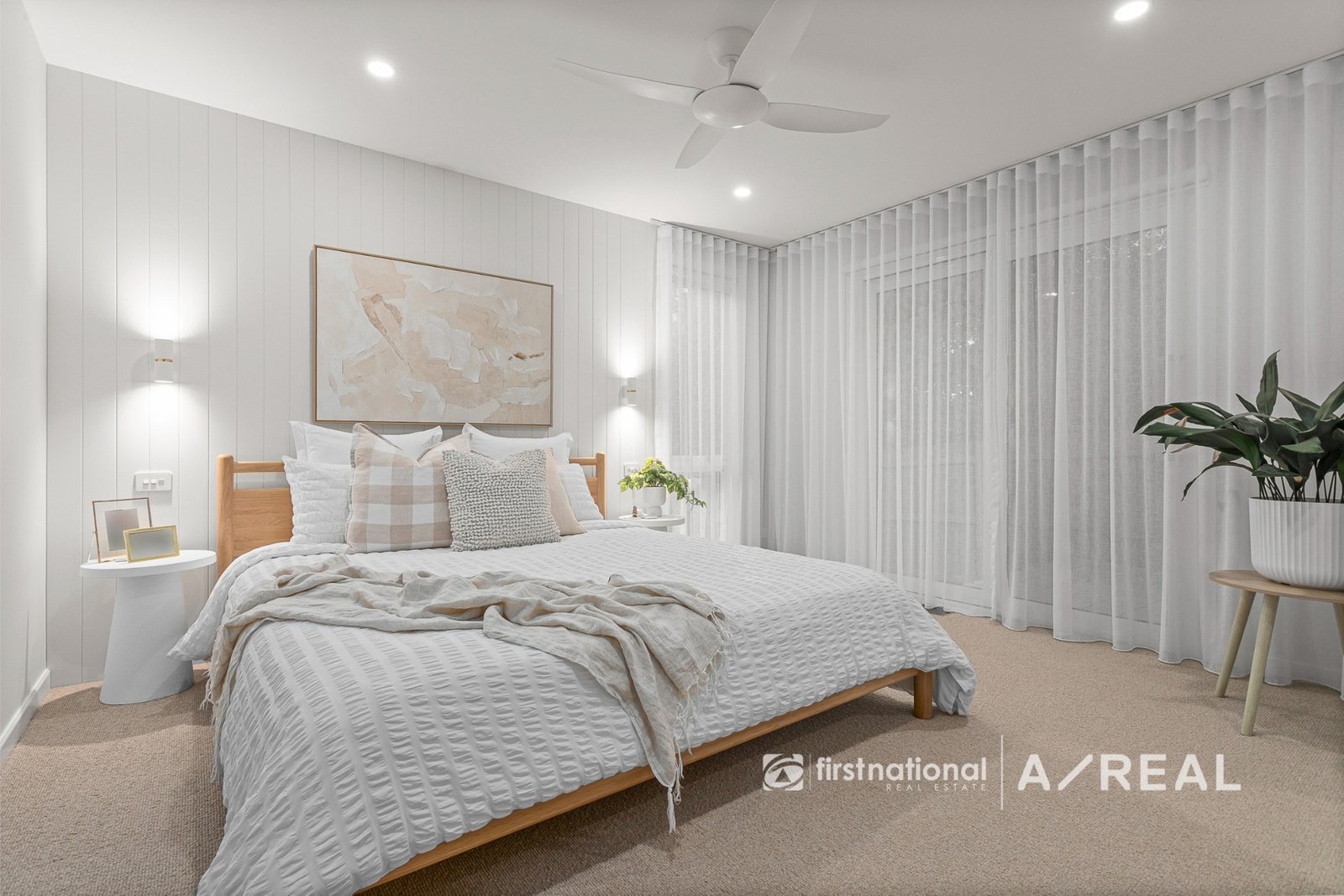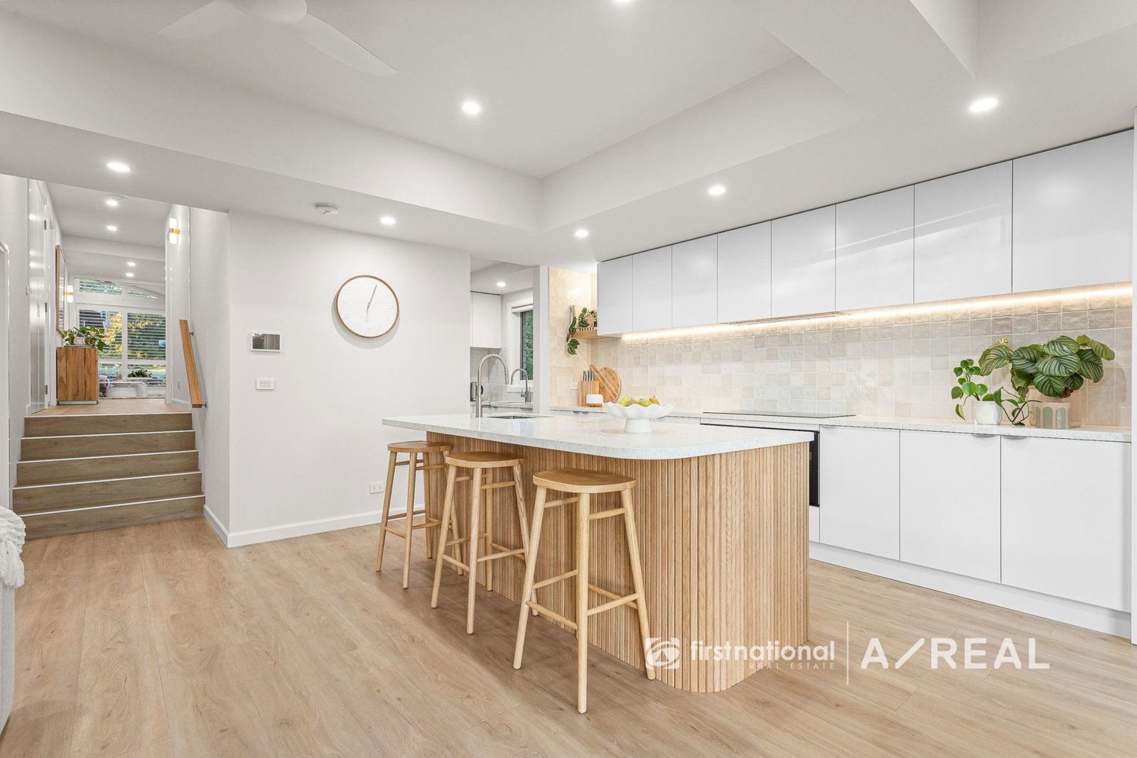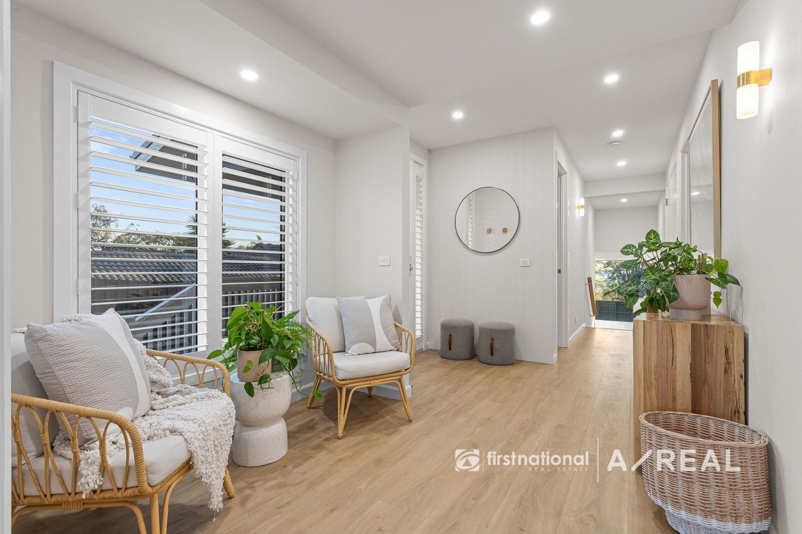 Enjoy year-round comfort with ducted floor heating and cooling, underfloor heating in both the ensuite and main bathroom, and remote-controlled fans throughout. Premium double-glazed windows and sliding doors enhance insulation and tranquility, while architectural comfort-glass windows and solid timber internal doors underscore the home's superior design. Storage and technology blend seamlessly, with a cleverly concealed central AV/storage cupboard ensuring no visible cabling or wires. Stylish cavity sliding doors with click-release mechanisms further contribute to the home's clean and modern aesthetic. High ceilings with designer features, downlights throughout, and a spacious double linen press add both style and functionality.