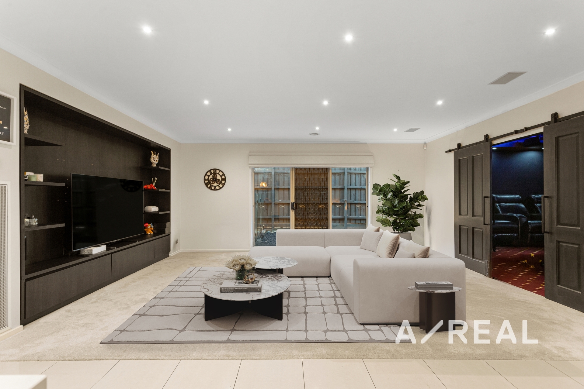 Step inside to discover an expansive layout featuring four separate living zones, a dedicated home office, and a stunning Hampton-style kitchen that serves as the true heart of the home. This culinary showpiece boasts 60mm stone-edge benchtops, a Franke sink, 900mm freestanding Smeg oven, and a fully fitted walk-in pantry-ideal for the home chef. The adjoining meals and family living space offers warmth and elegance, enhanced by custom cabinetry, and leads seamlessly into a state-of-the-art home theatre delivering an immersive Gold Class experience with 7.2 Dolby surround sound.