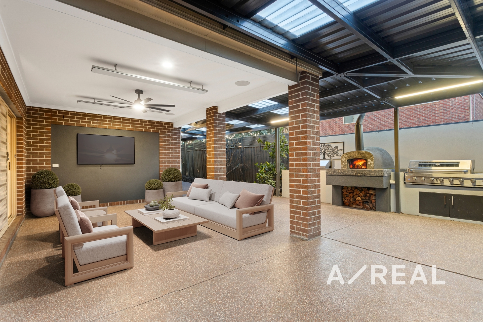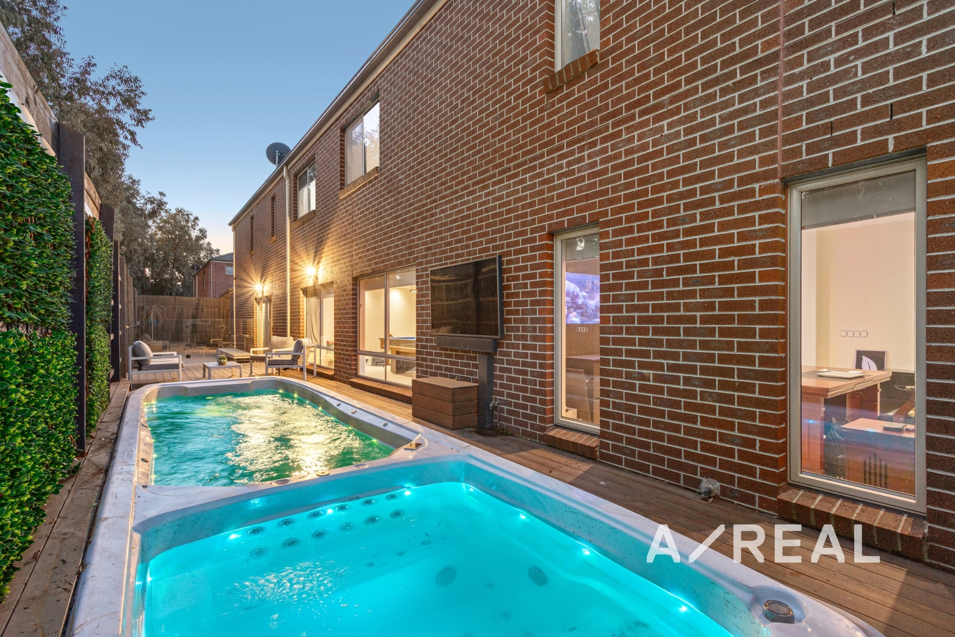 Outdoors, the home has been designed for year-round entertaining with minimal maintenance. Enjoy the under-roof alfresco dining area complete with heating and ceiling fan, a wraparound outdoor entertaining zone with woodfire pizza oven, charcoal rotisserie, and built-in BBQ-perfect for hosting large gatherings. Your private resort-style escape is complete with a heated 5-seater jacuzzi, swim spa, and stunning merbau decking.