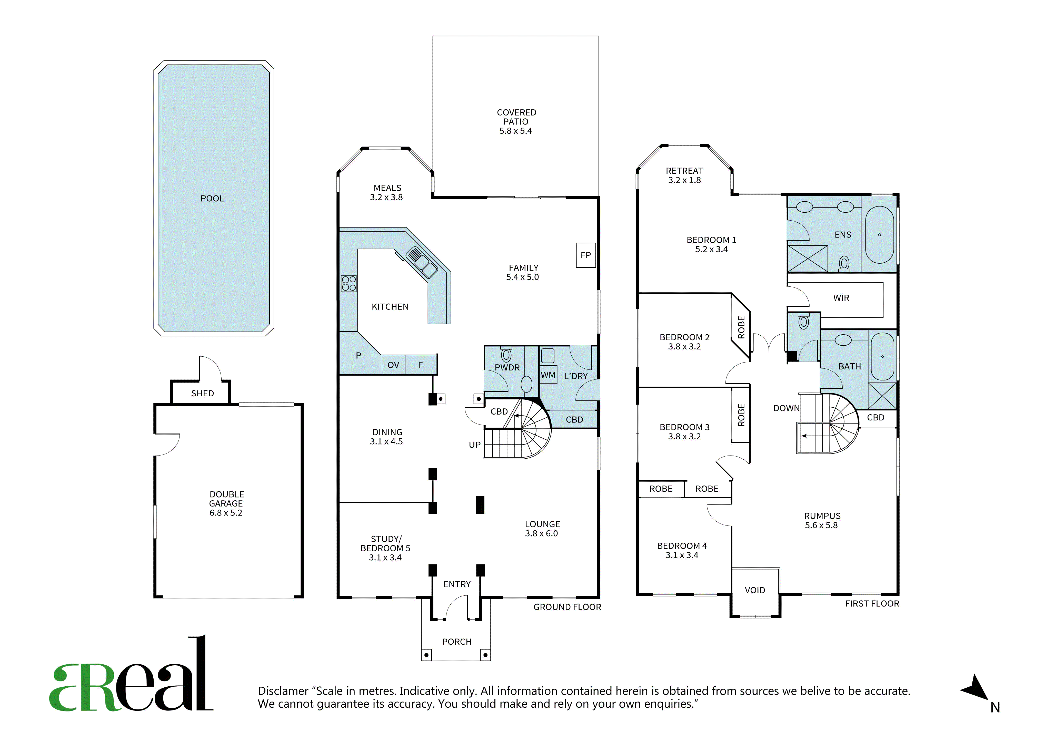- Upstairs, a large rumpus/media room complete with projector, screen and speakers is flanked by four robed bedrooms, a central bathroom and separate toilet.