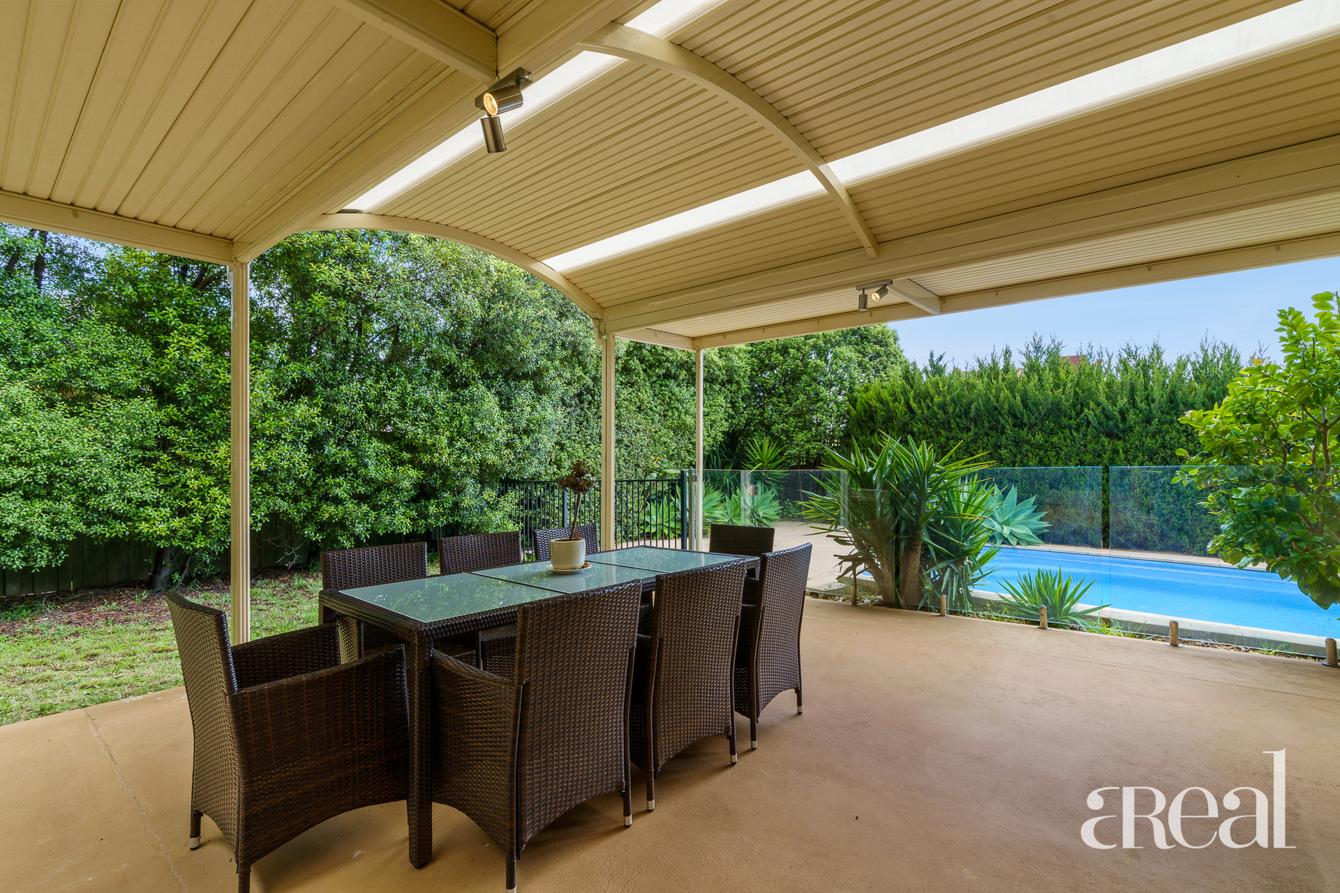 - Primed for year-round entertaining and relaxation, a private covered alfresco rests amid easy-care gardens. Complemented by a securely fenced solar heated swimming pool.