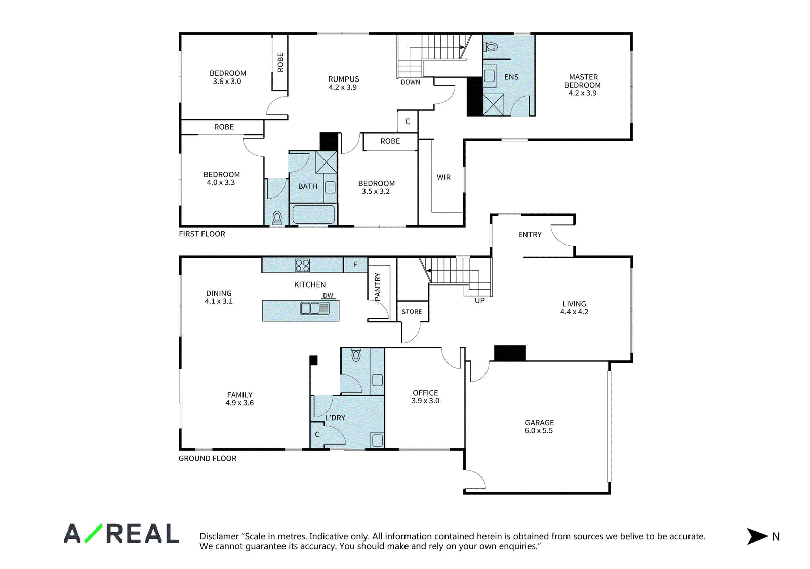 Back inside, a rumpus room is set at the top of the stairs and leads to the four good-size bedrooms including your master with a huge walk-in robe and an ensuite. The guest bedrooms each have a built-in robe plus there's a well-equipped main bathroom, a main-floor powder room, a large laundry and a double garage.