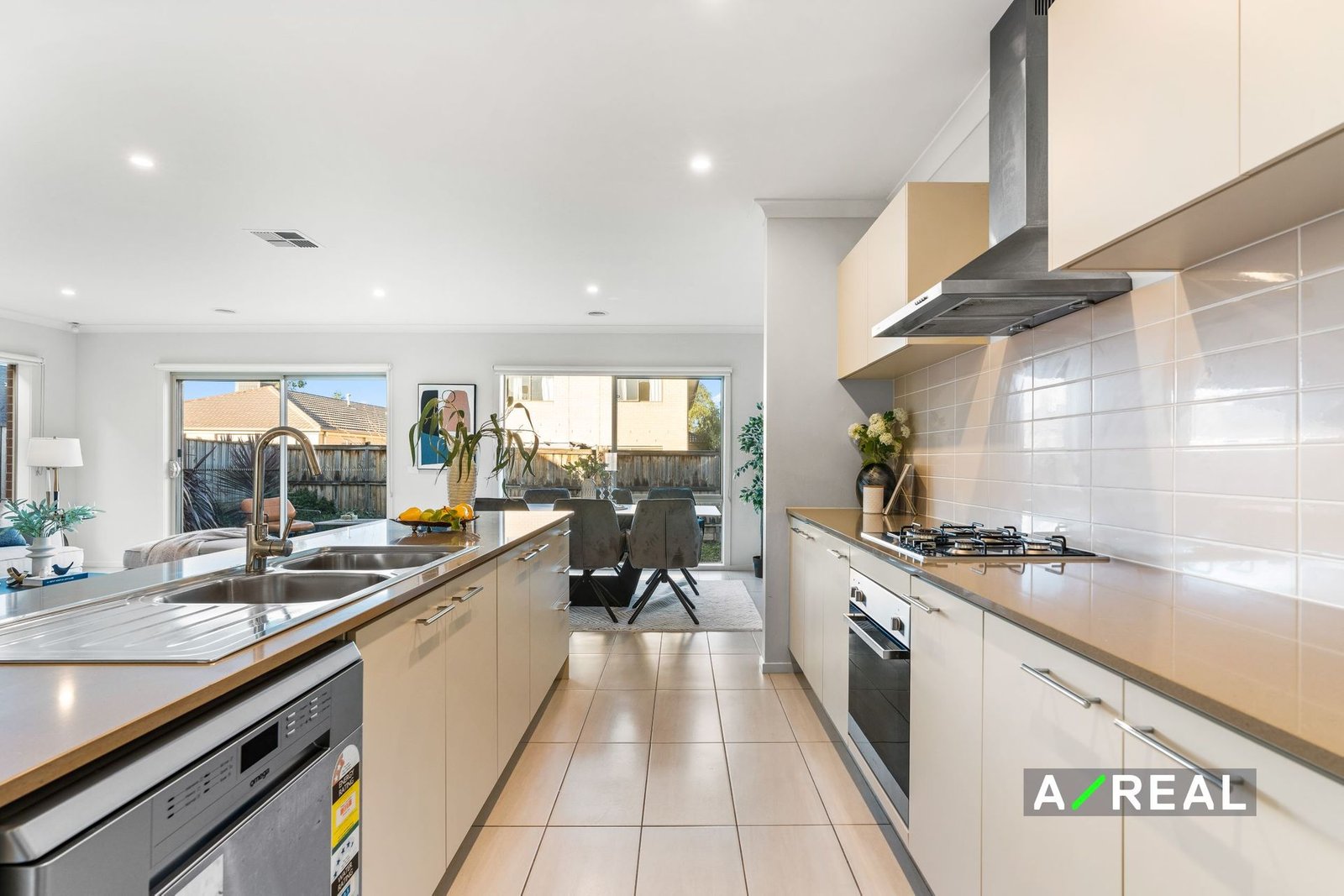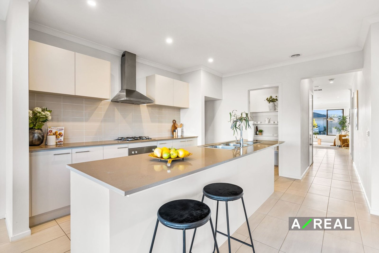 A large centre island and a suite of stainless steel appliances are all yours in the sleek kitchen alongside a walk-in pantry, breakfast bar seating and a tiled backsplash. Cooking for loved ones will be a breeze in this chef's haven before moving into the dining area or stepping outside to the patio to relax outdoors and dine under the stars.