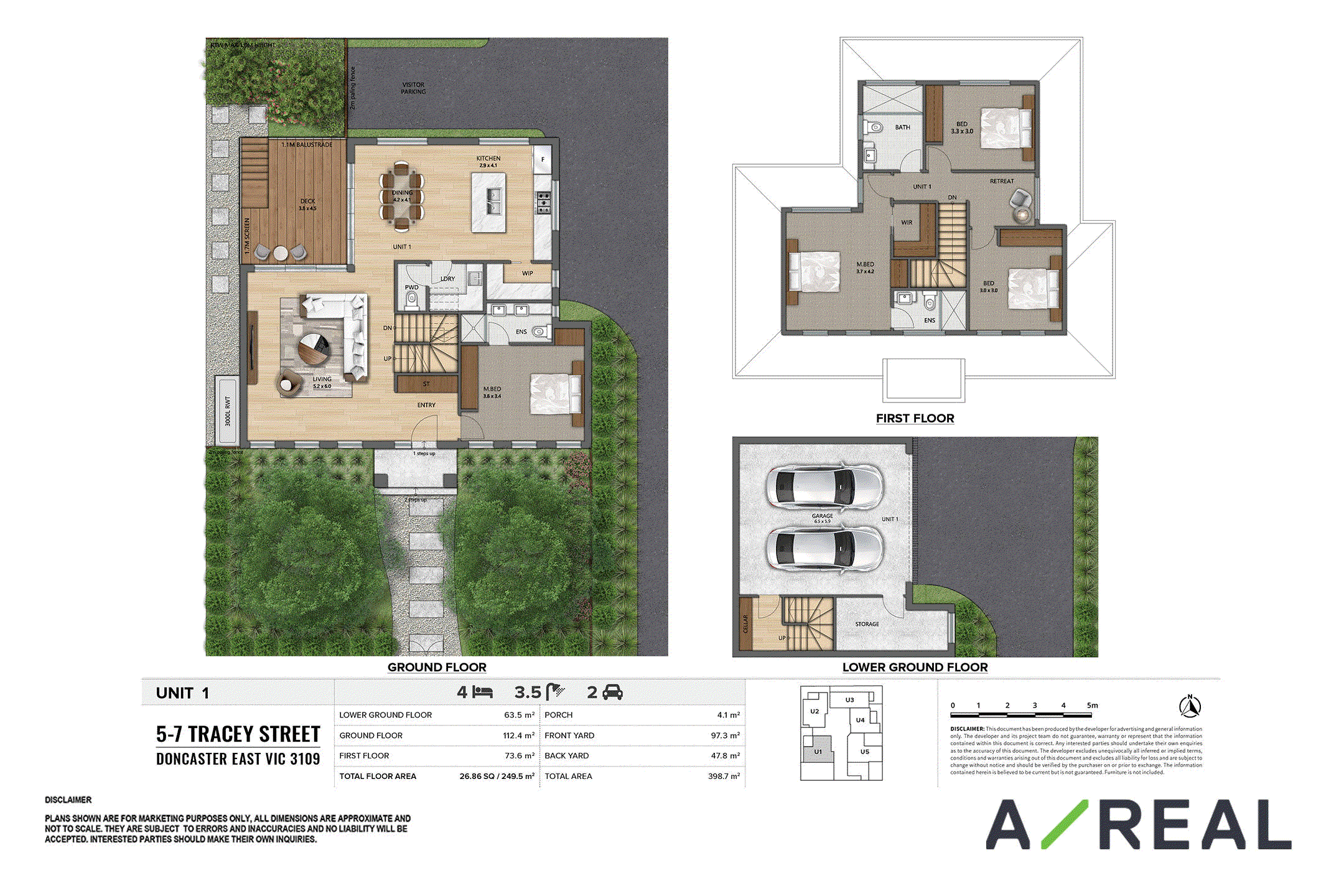 Contemporary and atmospheric 4-bedroom townhouse with modern open kitchen & lounge room design, double garage with bicycle parking space, and extra storage space & wine cellar in the basement of Unit 1 & 5.