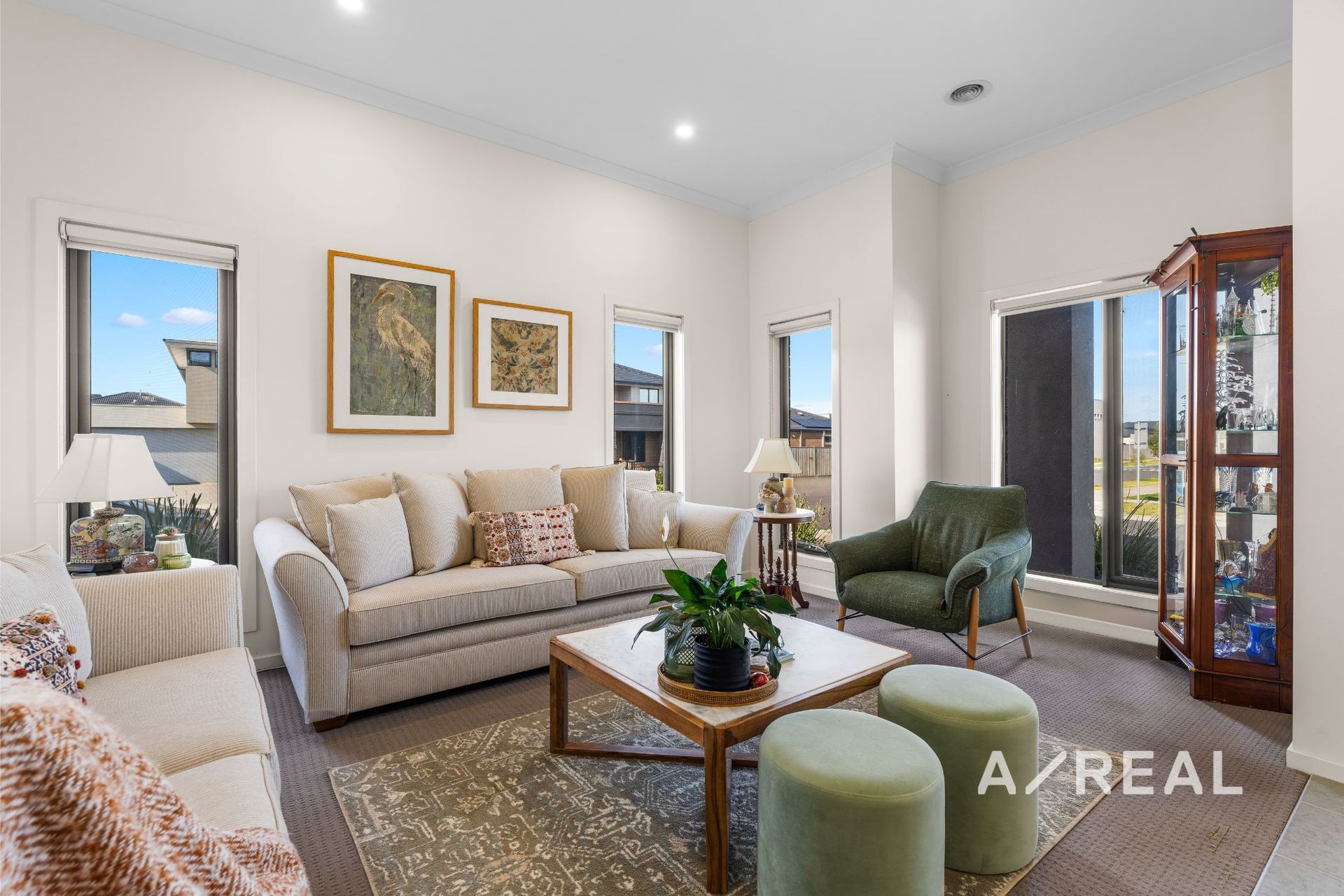 Modern finishes and natural light flow effortlessly throughout the luxurious interior, with an inviting living room preceding a spacious open-plan family/meals area and striking well-appointed kitchen (walk-in pantry) capturing beautiful northern sun.