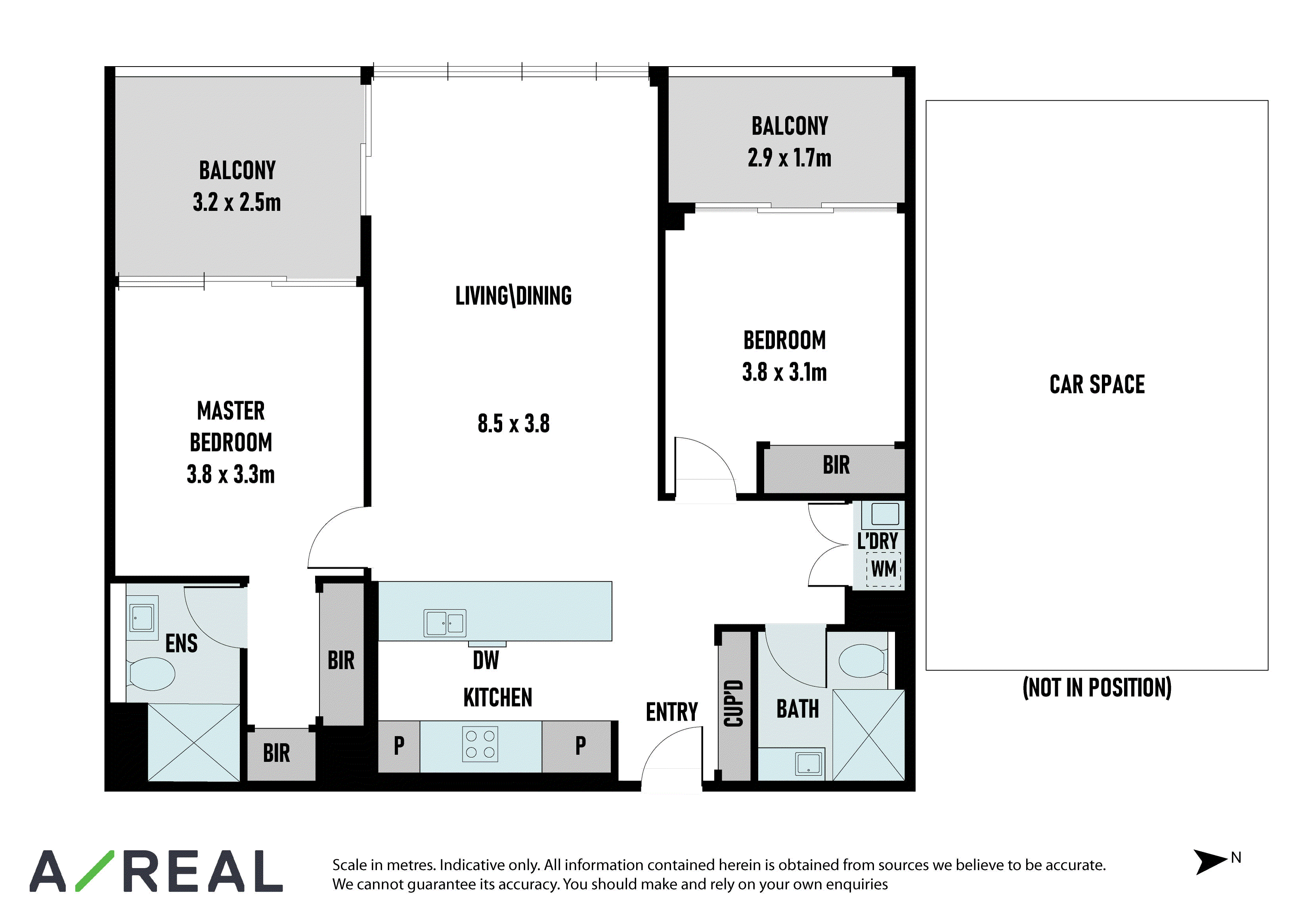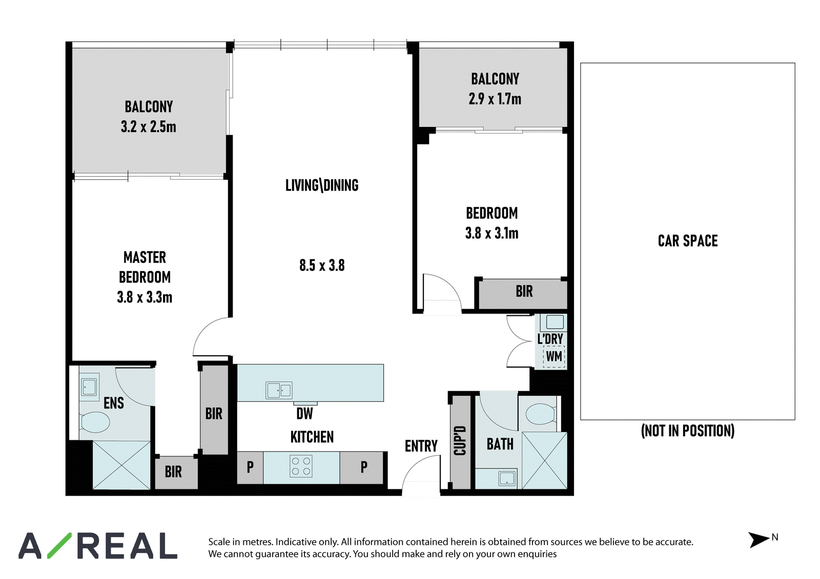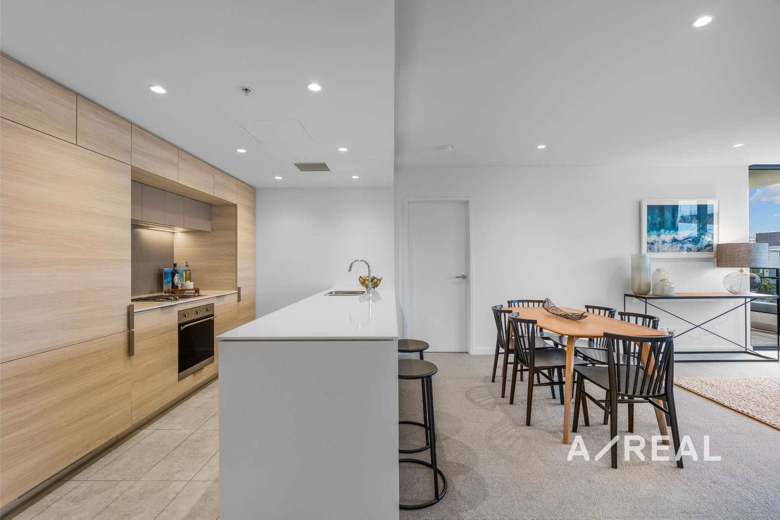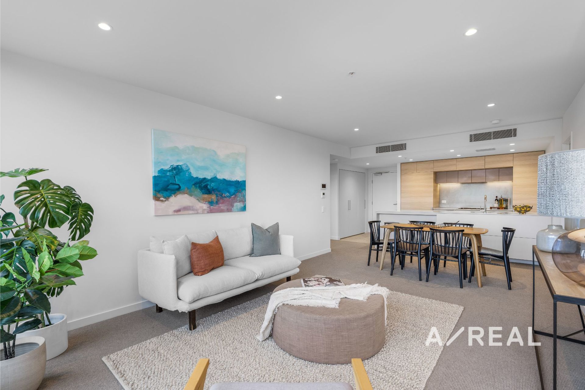 Sleek contemporary interiors are flooded with natural light and offer open-plan living/dining, complemented by a deluxe stone-topped kitchen, ducted heating/AC, two over-sized bedrooms each fitted with BIRs and balcony access (main with striking ensuite), plus a bespoke bathroom.