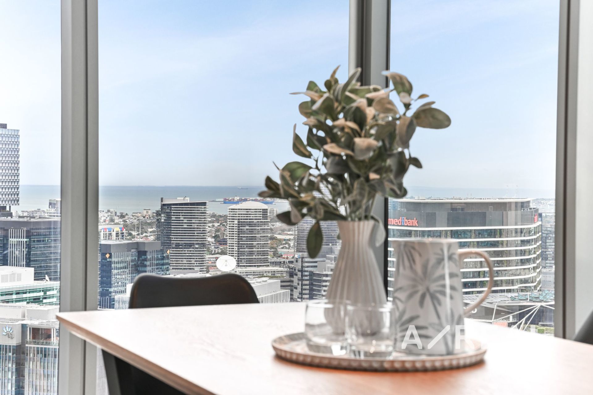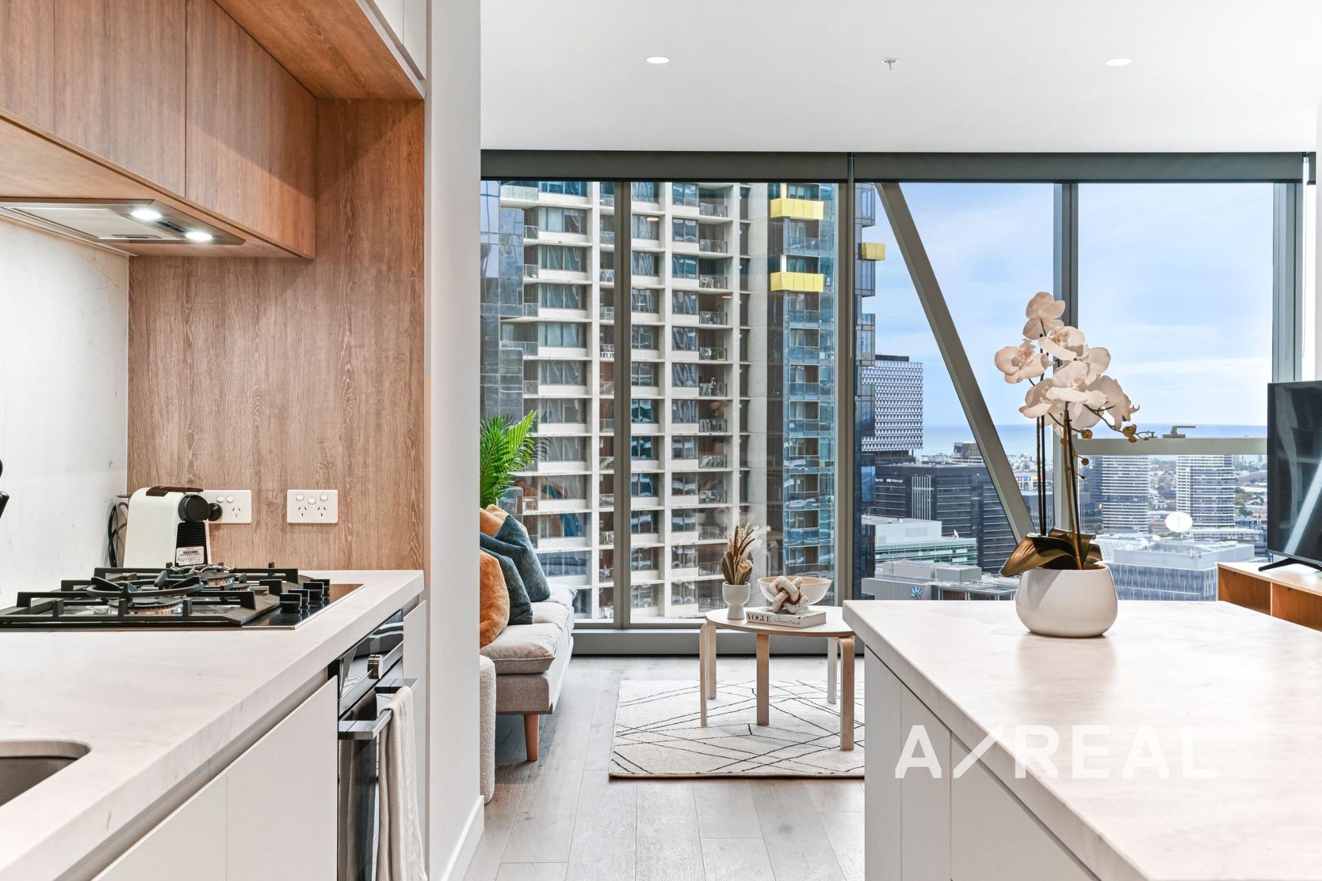 Timber floors and breathtaking uninterrupted views make a spectacular impact throughout the window-framed open-plan living/dining area, complemented by a lavish kitchen appointed with premium appliances, integrated fridge/freezer, stone surfaces and island bench. Impressive accommodation is further displayed by 2 robed bedrooms (main with chic ensuite) and striking bathroom.