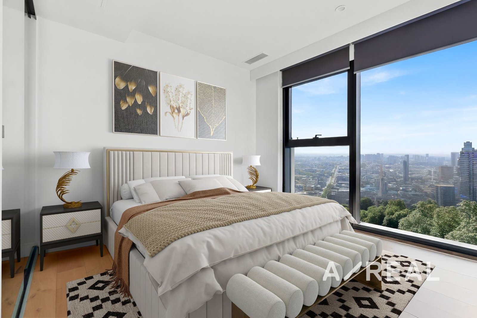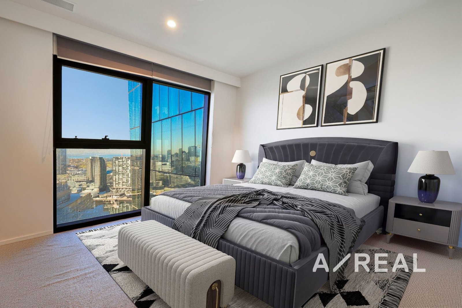 Perched 32 floors high in the luxurious Marina Tower, this designer apartment is immersed in spectacular views from every angle.