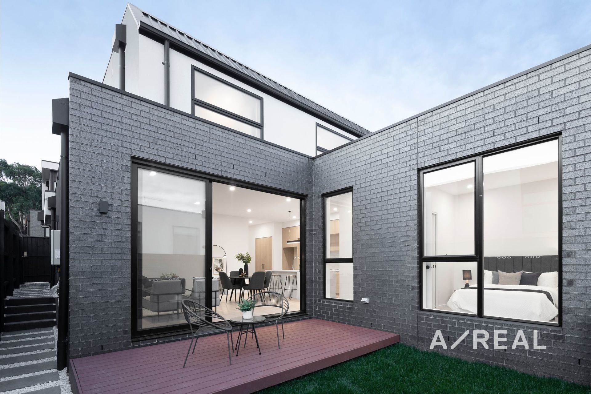 Appreciate the flexibility of ground and upper-level main bedrooms, each fitted with a striking fully-tiled ensuite, accompanied by 2 further robed bedrooms, sleek family bathroom and teenage retreat. Promoting unrivalled quality, this remarkable home is complete with heating/AC, entertaining deck and double garage.