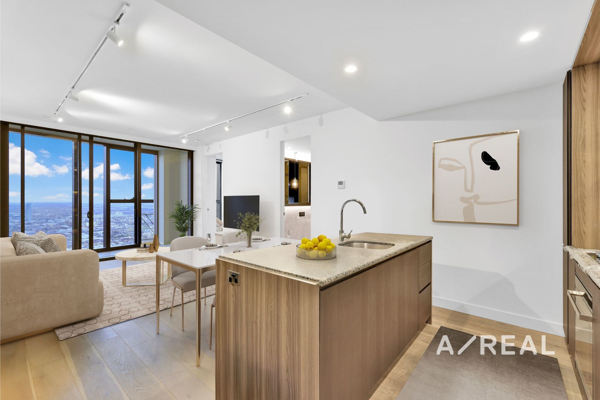 Modern finishes, timber floors and floor-to-ceiling windows create vibrancy and excellence throughout the open-plan living/dining area, complemented by a deluxe well-equipped kitchen and enclosed balcony.