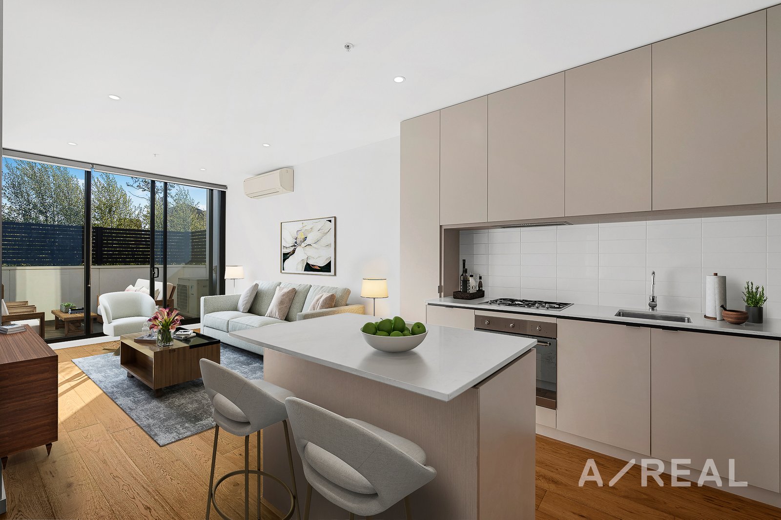 Sensationally situated moments from Kew Junction, transport and parklands, the bright and airy interiors ensure effortless modern appeal, featuring a brand-new open plan kitchen, light-filled living and dining area, ensuite bathroom with incorporated laundry facilities and a wide entertainer's balcony with idyllic treetop outlook. Add to this, bedroom built in robes, wall panel heating, split system cooling, undercover parking and secure intercom entry.