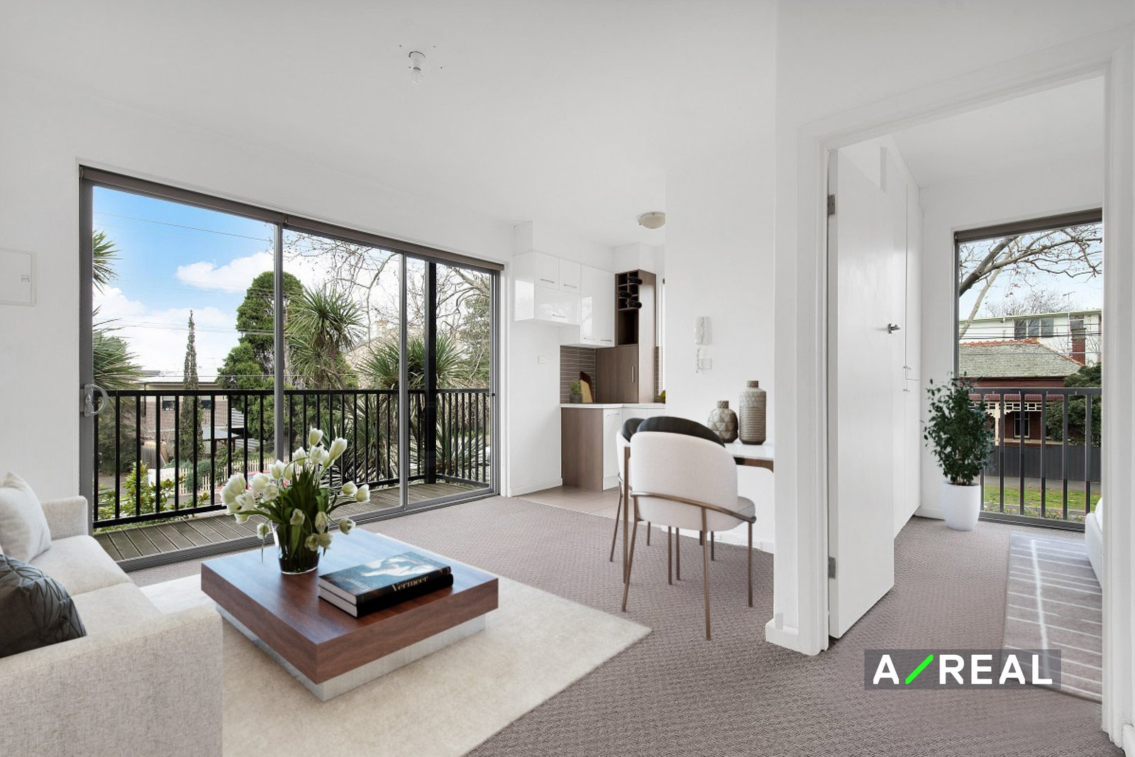 Central living/dining with generous balcony