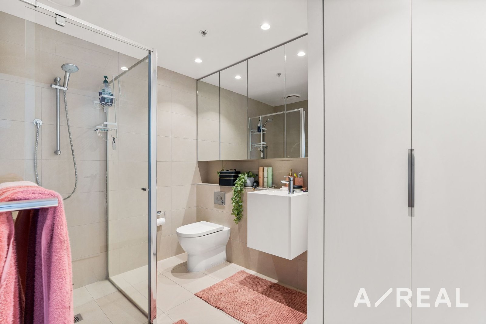The modern and well-maintained bathroom features floor-to-ceiling tiles, and in this space, you'll also find the laundry nook. An additional storage cupboard in the hall adds appeal, as does the small office nook, perfect for those days you need to work from home.