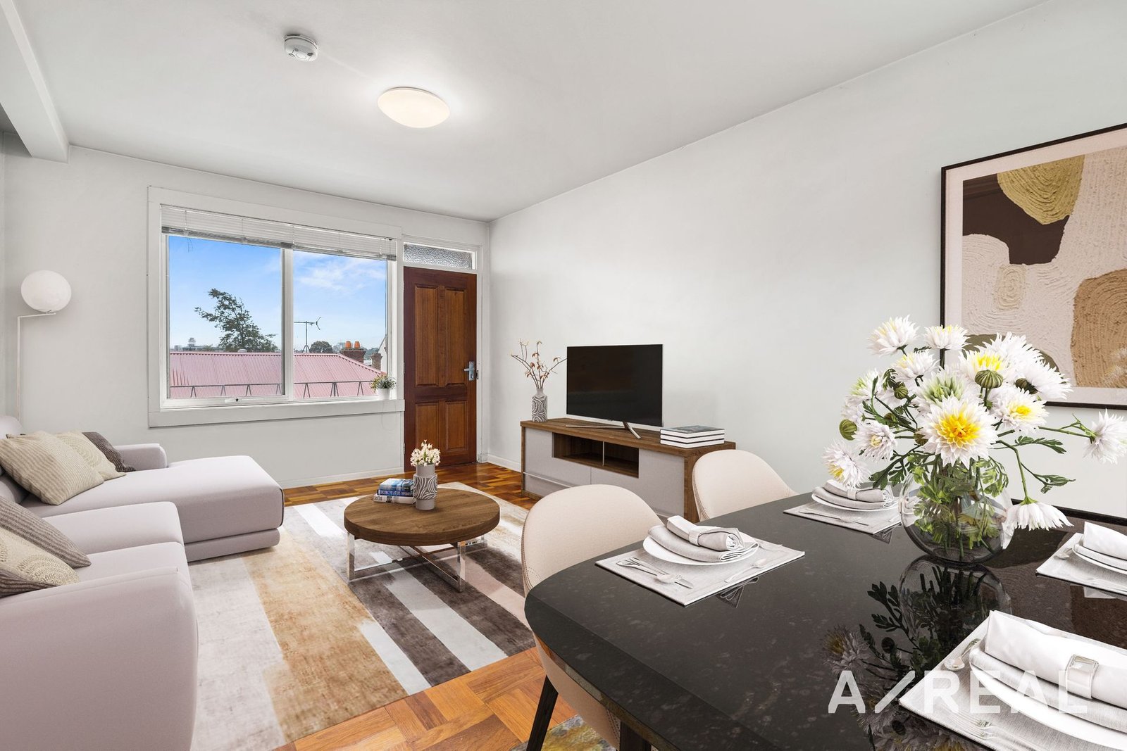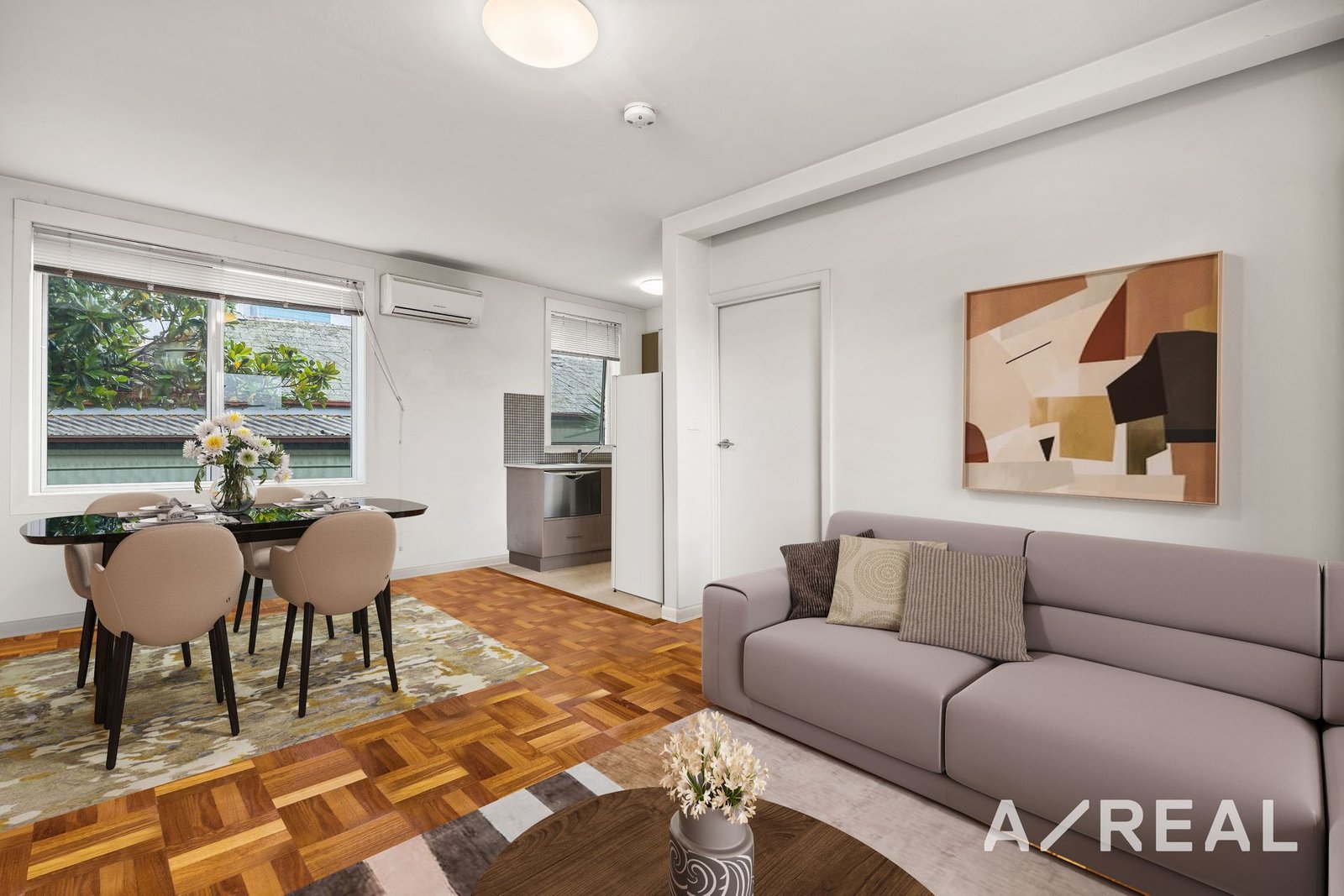 The fresh interior has polished parquetry floors and an open-plan layout. Air conditioning provides comfort all year round and the large windows allow light and air to flow through beautifully. The modern kitchen is well-appointed with lots of cabinetry, stone benchtops, gas cooking, with quality stainless-steel appliances, including a dishwasher. The tiled bathroom has a shower, toilet and a Euro laundry with a sink and laundry basin for added convenience.