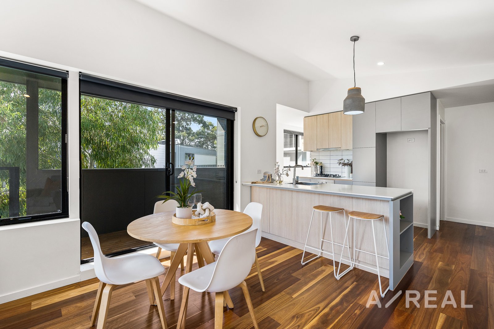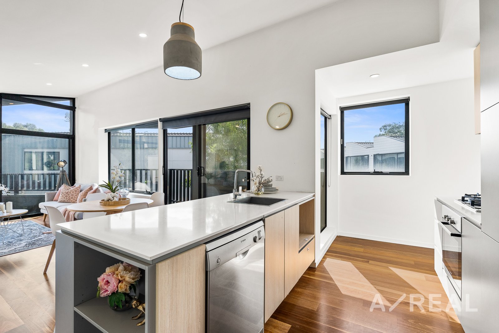 This townhome unit boasts a clever floor plan designed with convenience in mind. Warm timber floorboards dress the upper level, combined with ample natural light that spills through the sizeable windows that embrace the home.