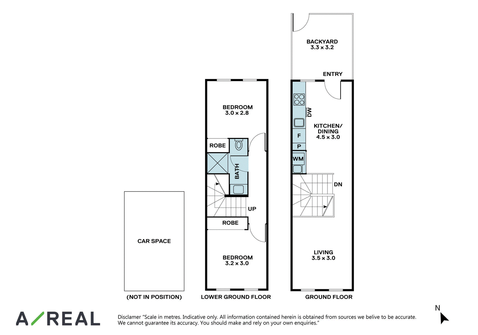 The top level boasts two generously sized bedrooms adorned with plush carpets and convenient built-in robes. Adding to the comfort, one of the bedrooms is equipped with air-conditioning. A spacious bathroom on this level features a large sink, vanity, and a mirrored cabinet making it easy to get ready.