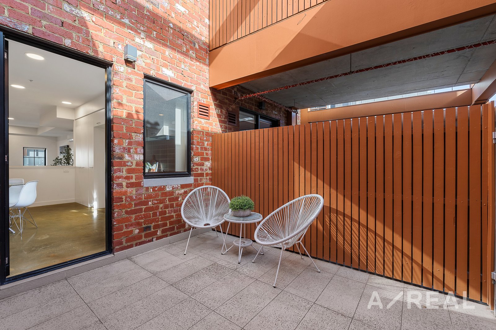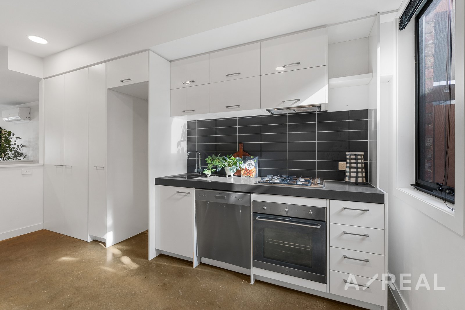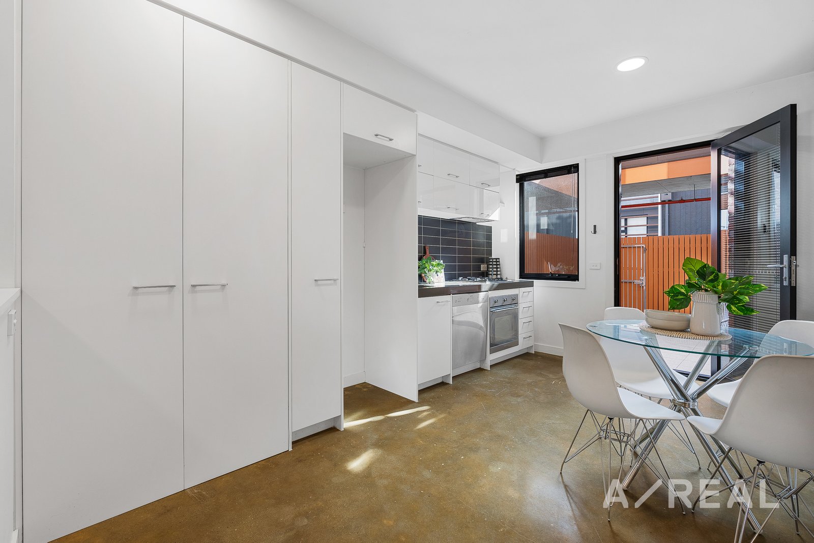 The first floor is designed to impress with an open-plan living area that truly elevates with modern polished concrete floors that exude sophistication, while the air-conditioned lounge area provides the ideal spot to unwind. The sleek and modern kitchen boasts stainless steel appliances and gas cooking, making meal preparation an absolute pleasure. Flowing effortlessly from the kitchen is the dining area, leading to a private paved courtyard that basks in sunlight. This fully fenced area offers both tranquility and security, complete with a lockable exit for your peace of mind. Additional features include a ground-level car parking space accompanied by a storage area.