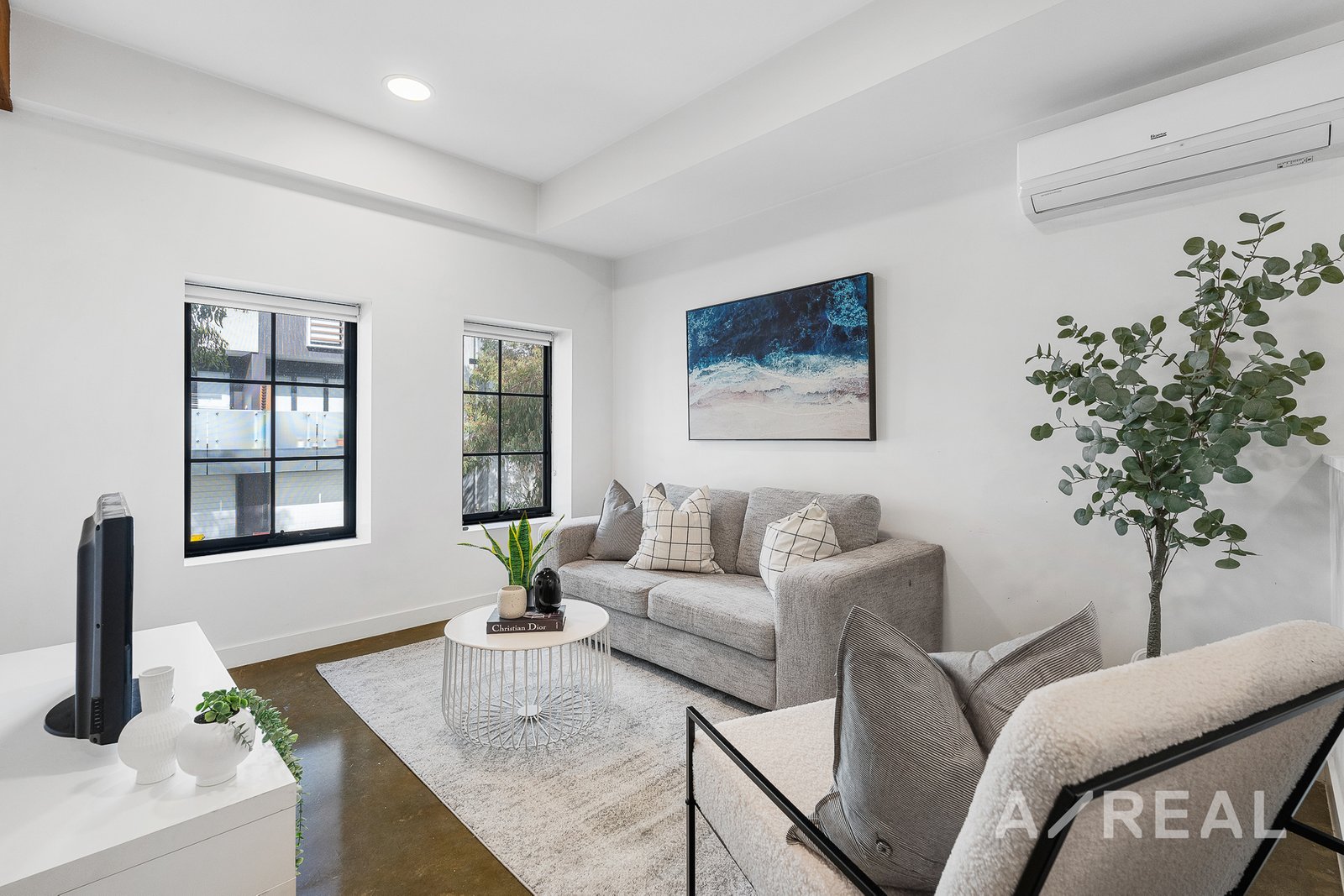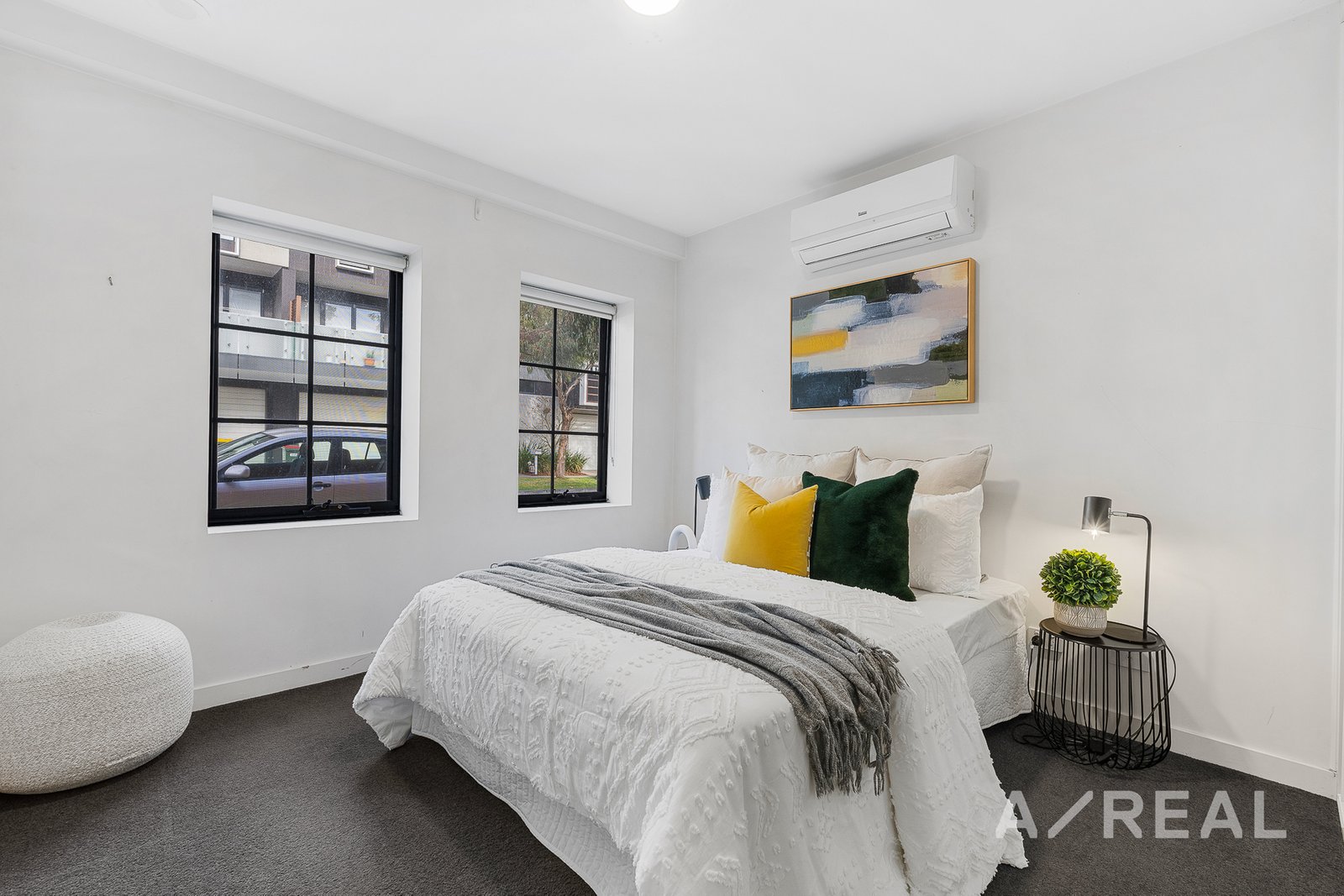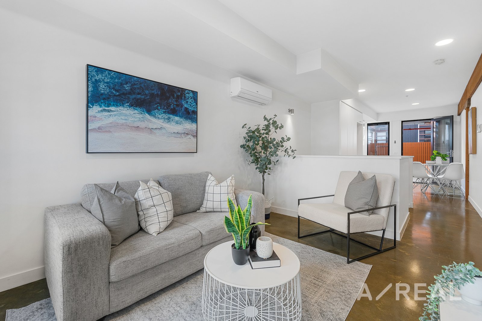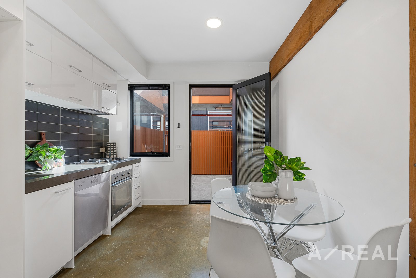 The first floor is designed to impress with an open-plan living area that truly elevates with modern polished concrete floors that exude sophistication, while the air-conditioned lounge area provides the ideal spot to unwind. The sleek and modern kitchen boasts stainless steel appliances and gas cooking, making meal preparation an absolute pleasure. Flowing effortlessly from the kitchen is the dining area, leading to a private paved courtyard that basks in sunlight. This fully fenced area offers both tranquility and security, complete with a lockable exit for your peace of mind. Additional features include a ground-level car parking space accompanied by a storage area.