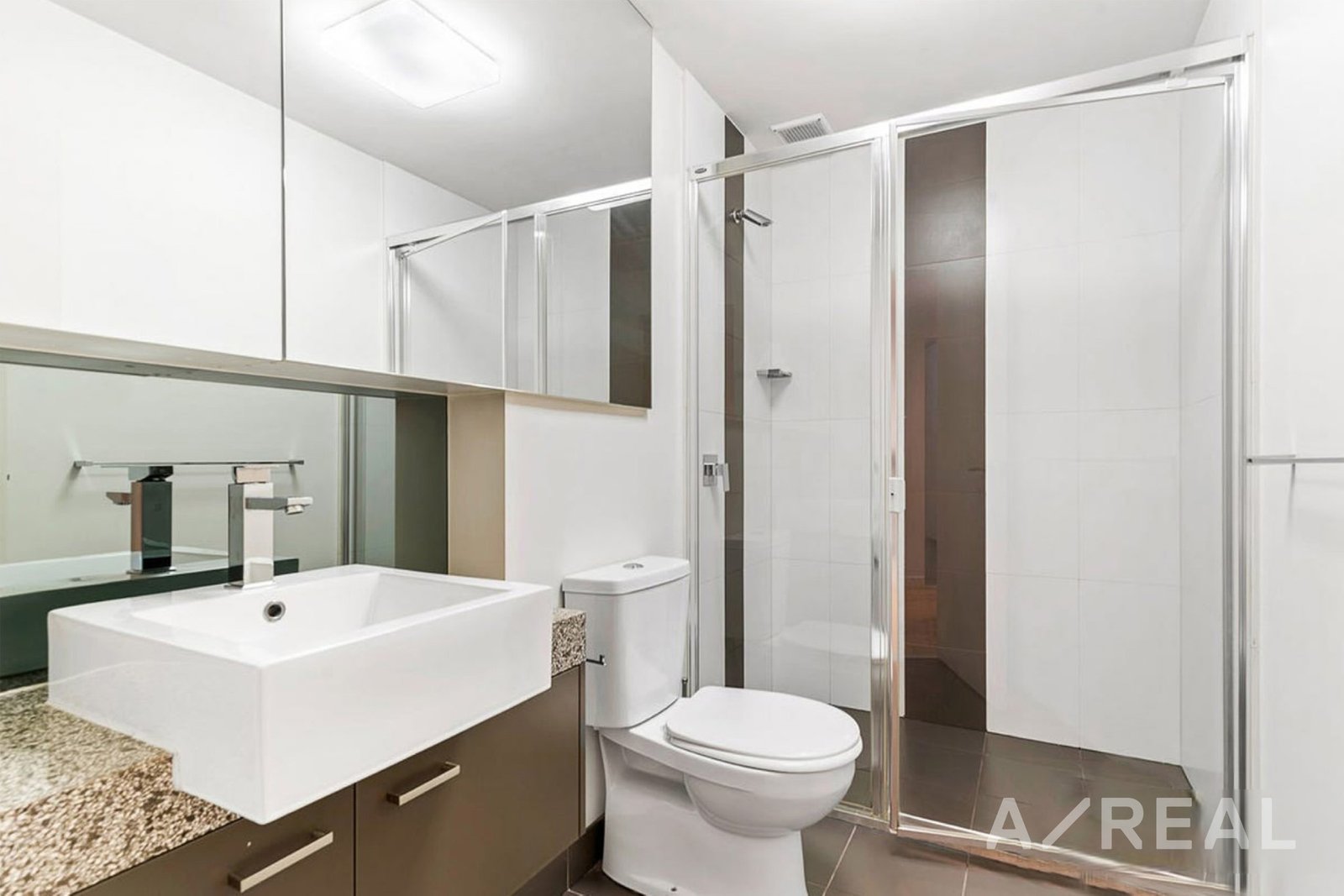 One comfortable, carpeted bedroom feature built-in robes and the centrally located stylish bathroom is adorned with a large mirrored wall cabinet, vanity with storage, and a convenient Euro laundry.
