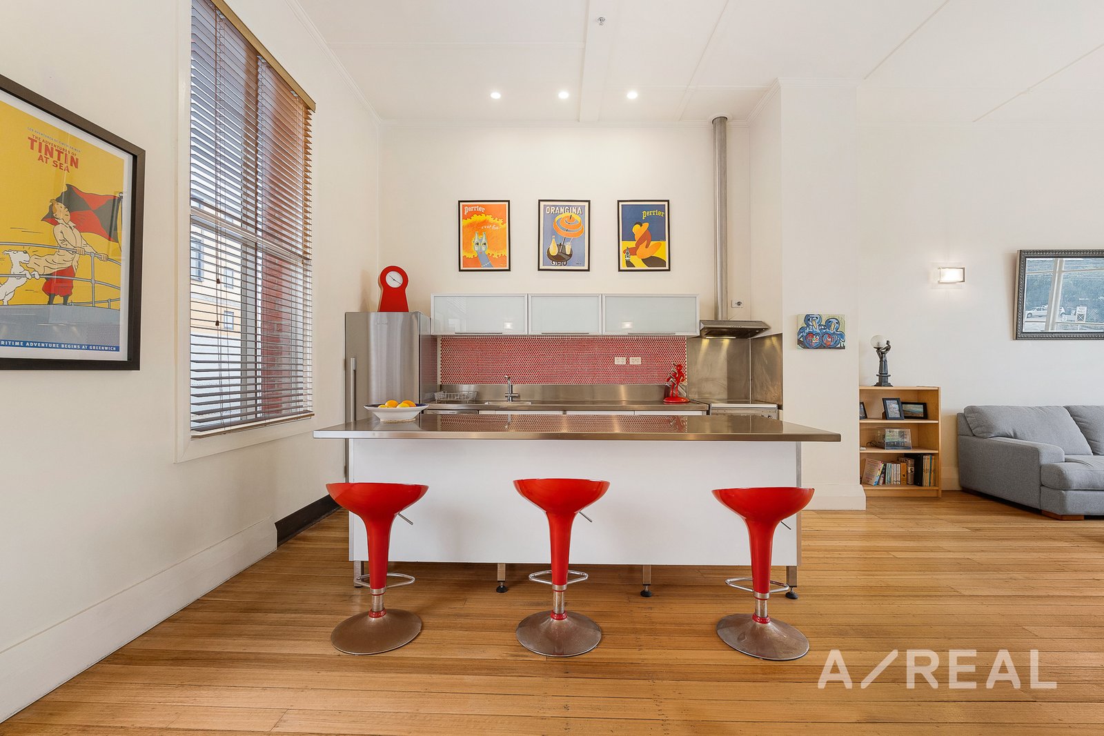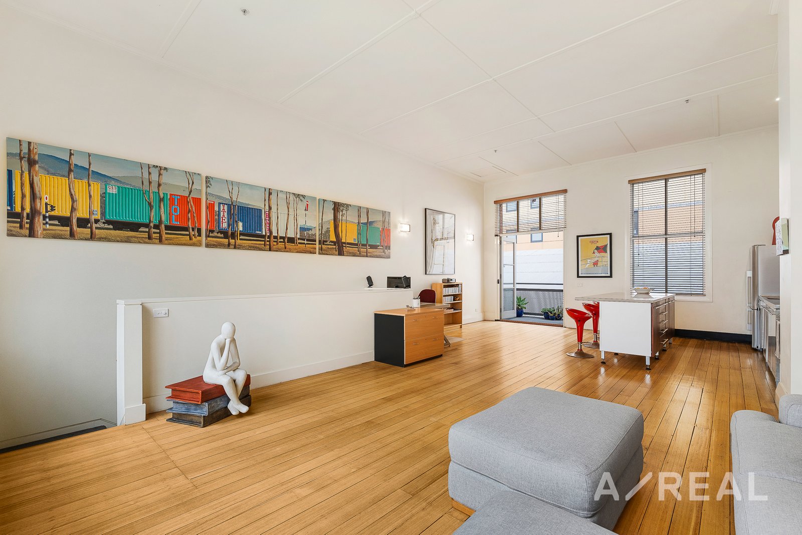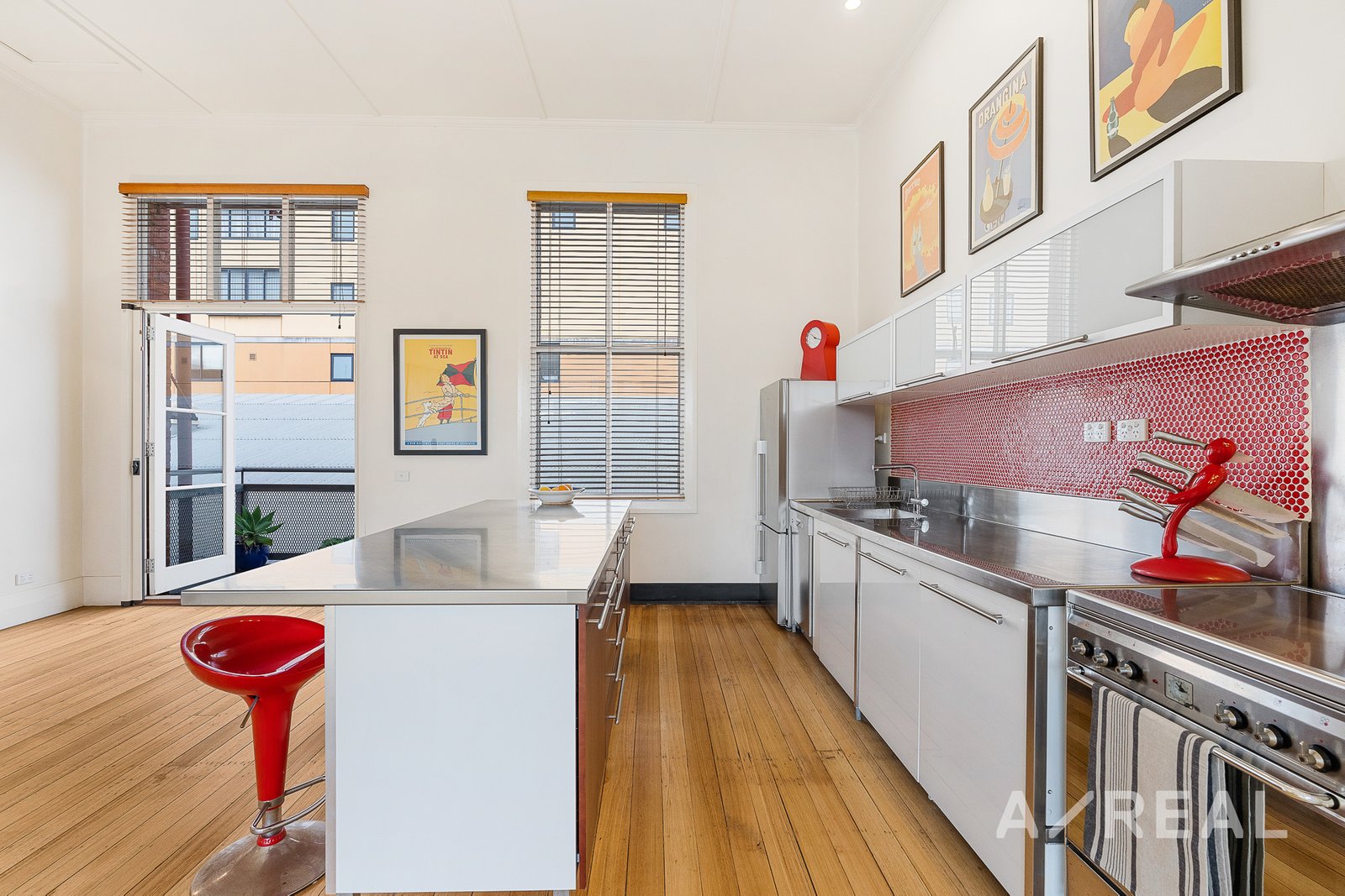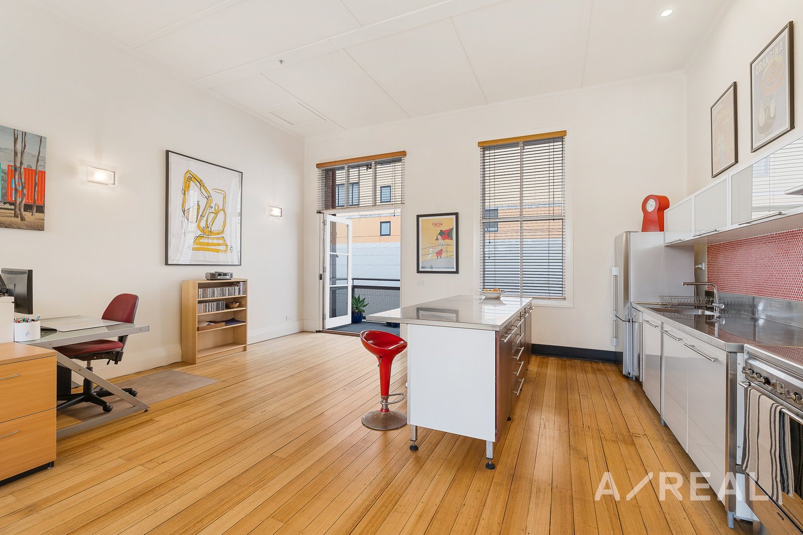 Preserved Heritage: Original thick brick walls, expansive picturesque windows, 4.5m high ceilings, and hardwood timber flooring maintain the property's historic allure.