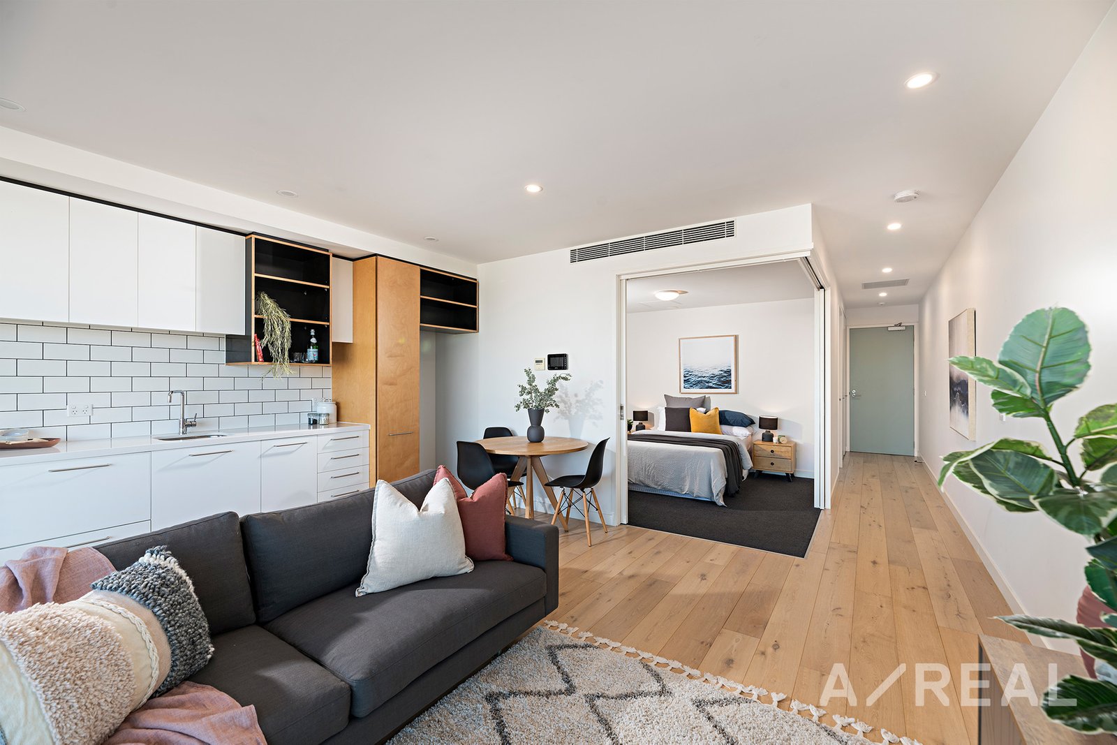 Upon entering, you are greeted by a generously sized peaceful bedroom featuring mirrored robes and a stylish bathroom with a convenient European laundry. You'll enjoy the open and bright living/dining area that boasts beautiful timber floors, seamlessly connecting to a large balcony terrace. From here, you can savour the spectacular leafy rooftop and skyline views, creating the perfect backdrop for both relaxation and entertainment.