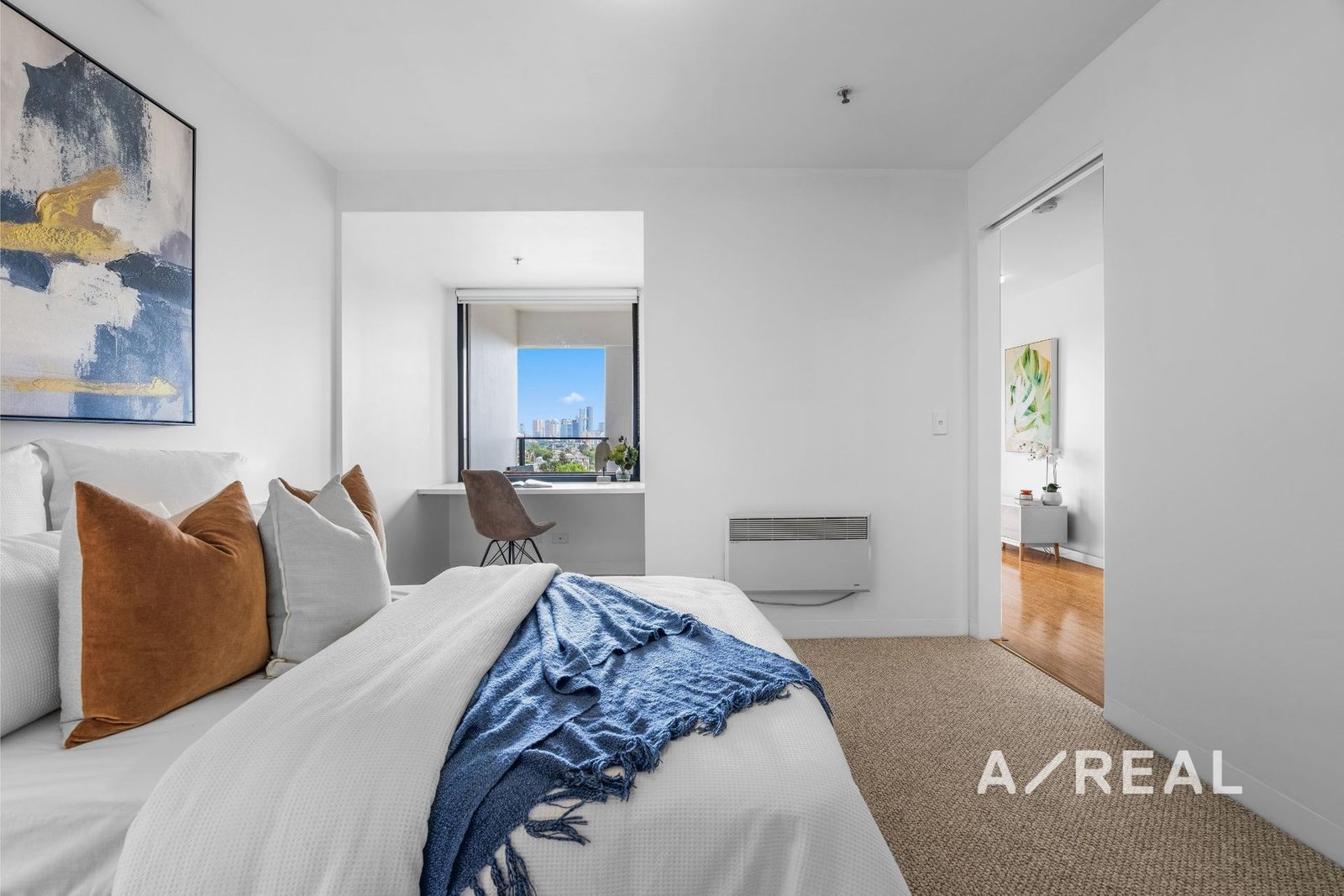 Ideal for market entrants, professionals and savvy investors, this modern marvel reveals open-plan living/dining, gourmet kitchen, balcony with uninterrupted and spectacular city views, over-sized bedroom featuring built-in robes and study nook, split system heating/AC, storage cage and car space located on level 1, and communal rooftop garden terrace with BBQ and dining facilities.