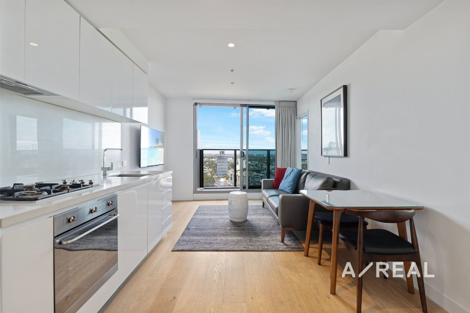 Finished to perfection, timber floors and natural light enhance the open-plan environment, and incorporates a striking kitchen luxuriously equipped with premium appliances and illustrious stone surfaces, and concludes onto a private balcony taking in sublime views.