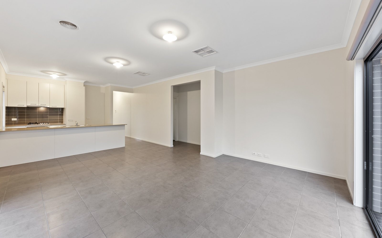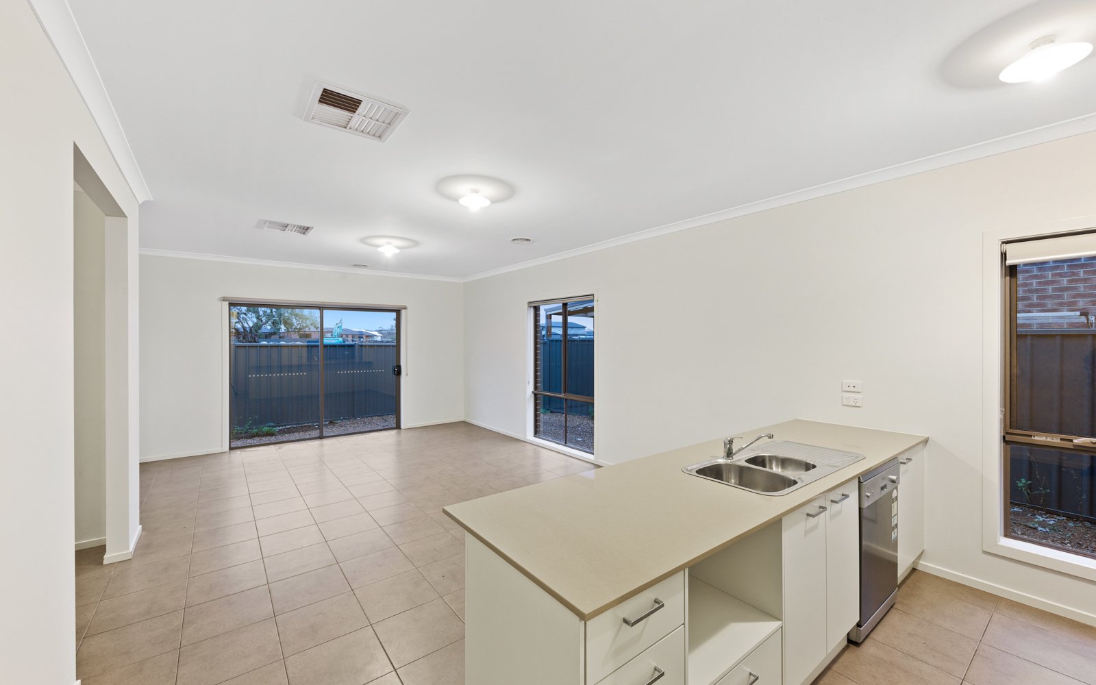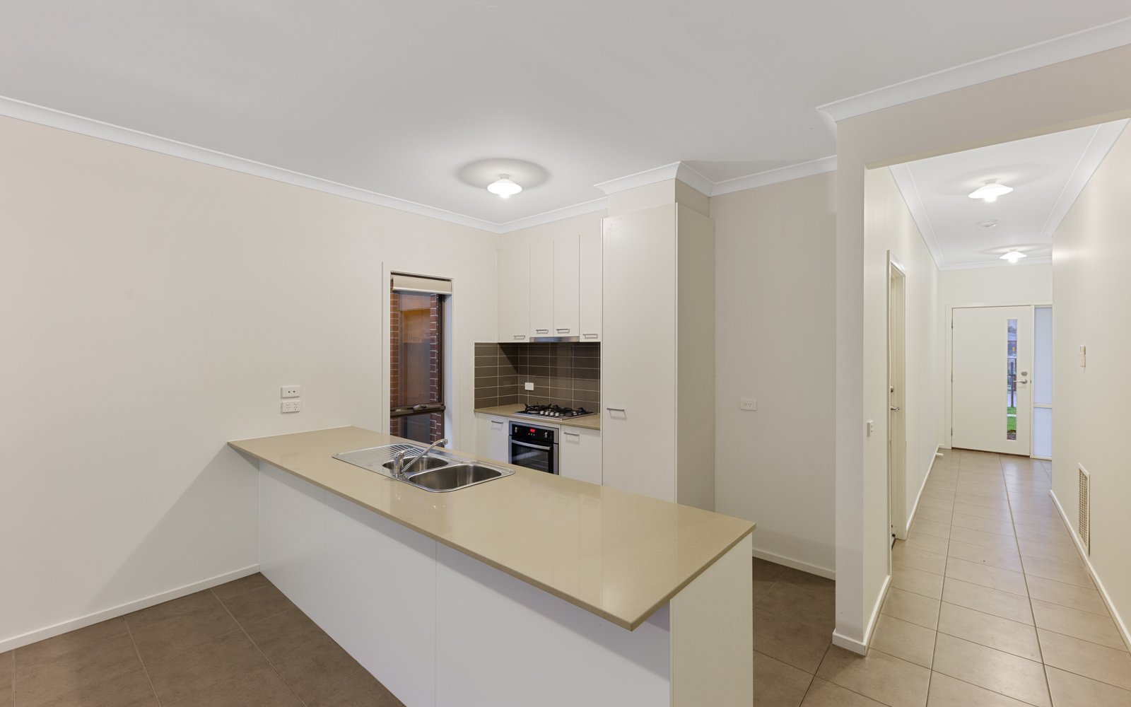 A tiled entrance hall leads to the open plan kitchen/ dining/ living area. Complete with stone benches, stainless steel appliances and gas cook top, the kitchen is sure to impress.