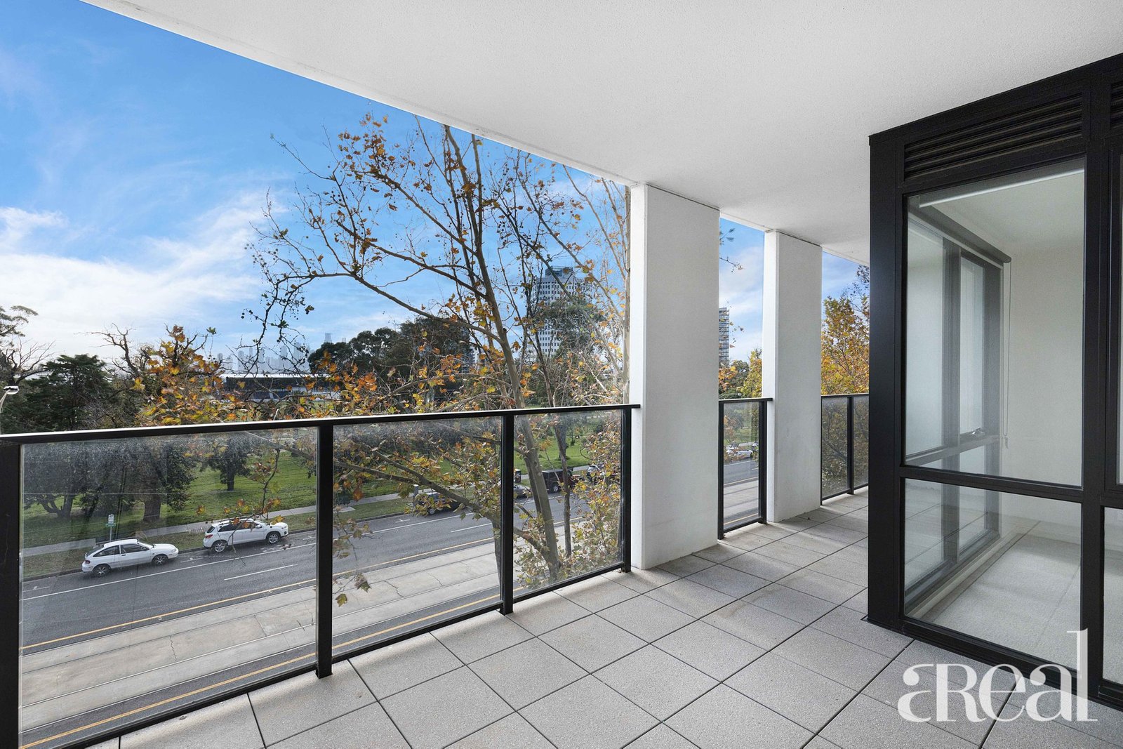 This minimalist designer apartment is a home with sunset views across Albert Park Lake that has the direct view of the Australian Grand Prix circuit and the city skyline.