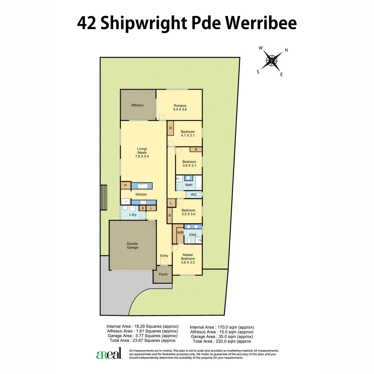 Comfortably accommodating, a main bedroom is equipped with a twin ensuite/walk-in robe, and is enhanced by 3 additional robed bedrooms, bright bathroom, heating/AC and double garage.