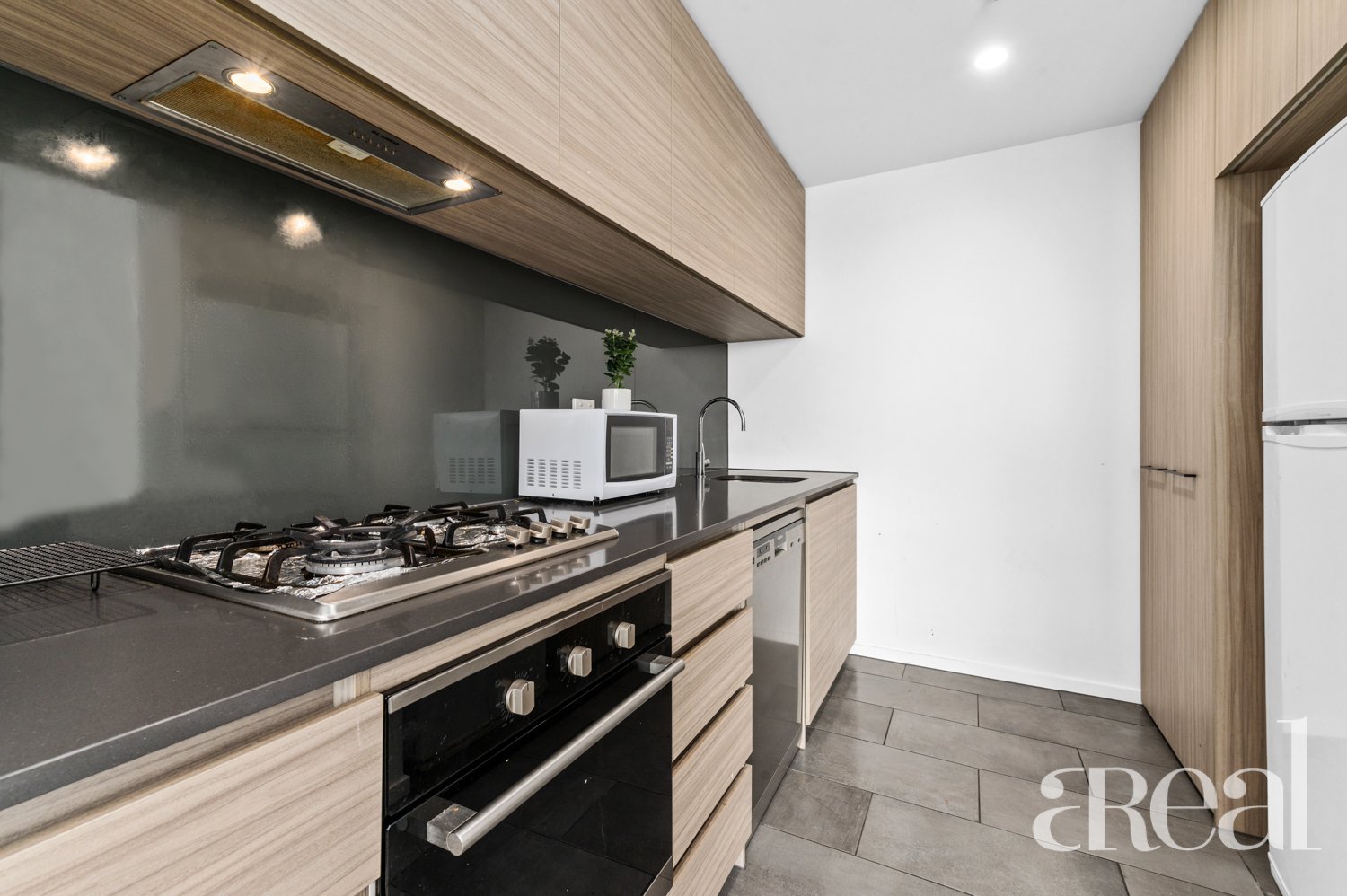 Any avid foodie will be drawn to the well-equipped chef's kitchen with stylish cabinetry, stainless steel appliances, a gas cooktop and a dishwasher. Easy-clean tile floors flow underfoot while the living space is carpeted, air-conditioned and opens to the expansive entertainer's balcony.