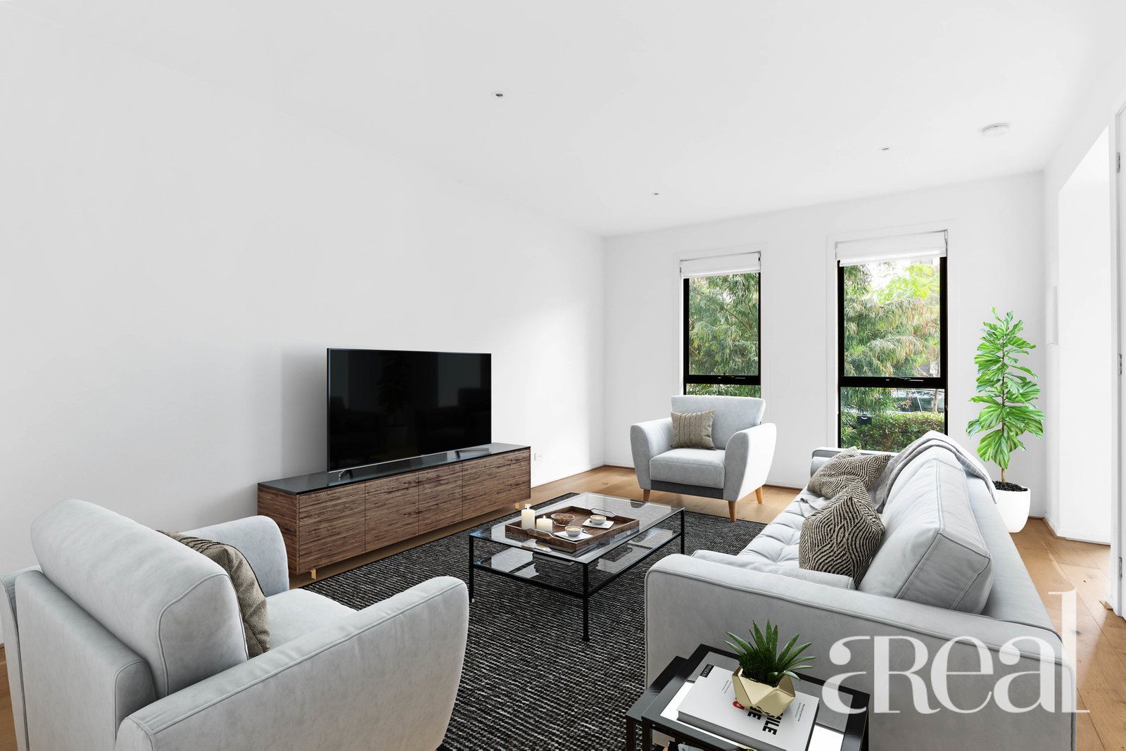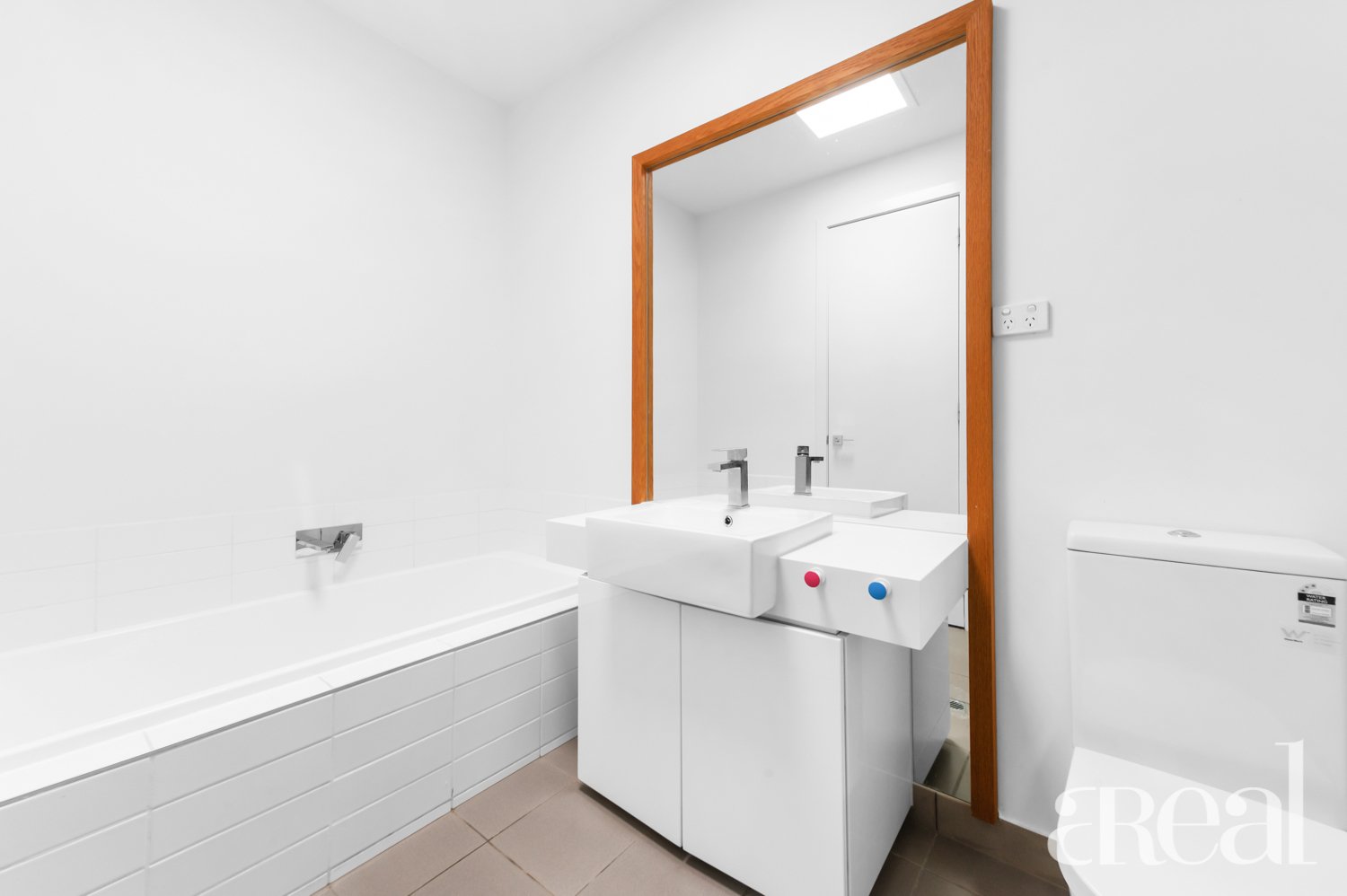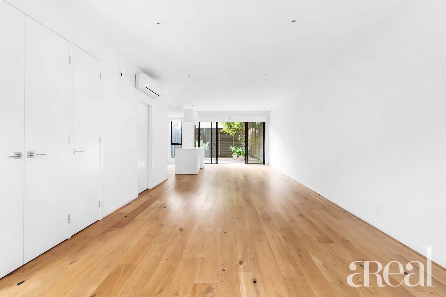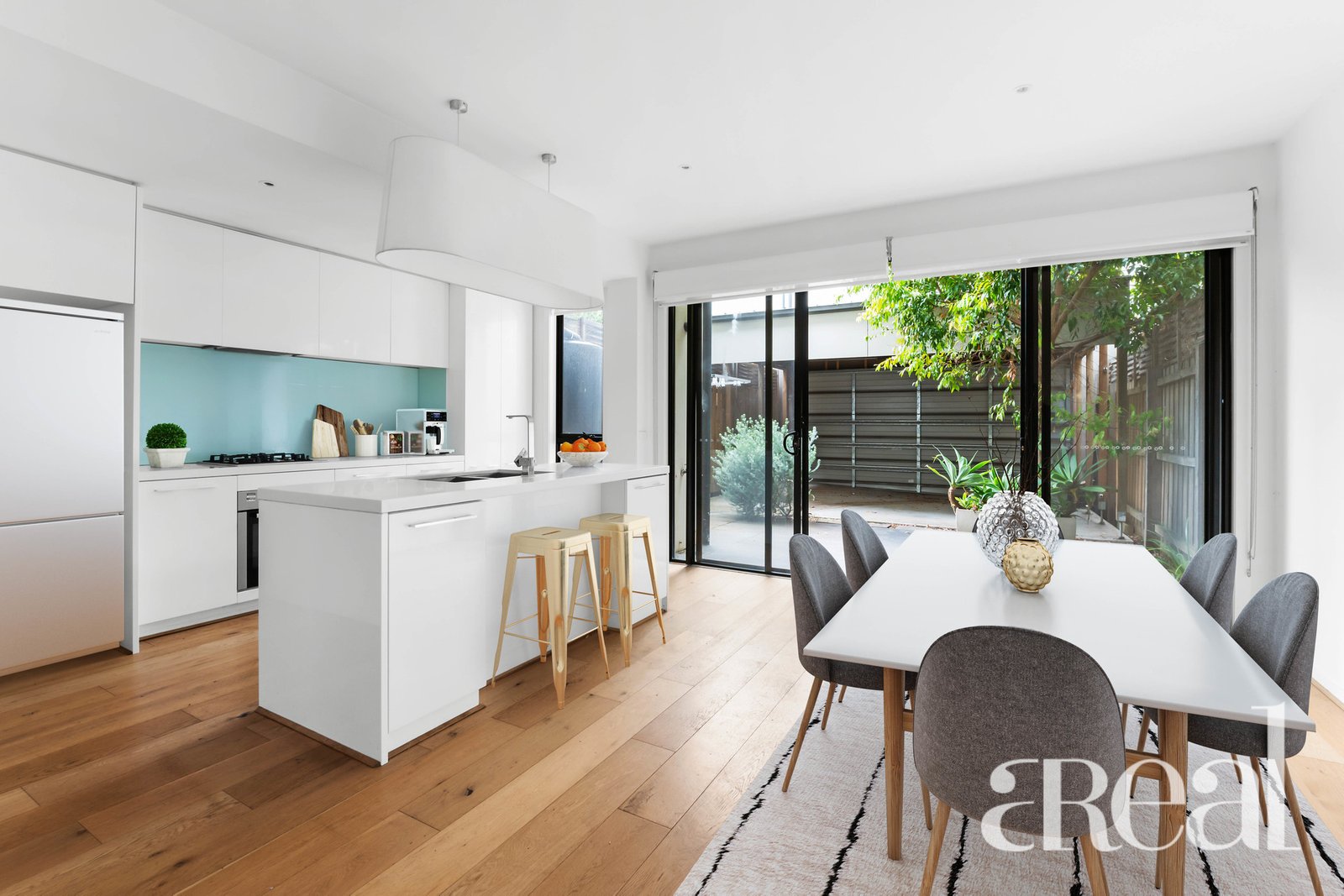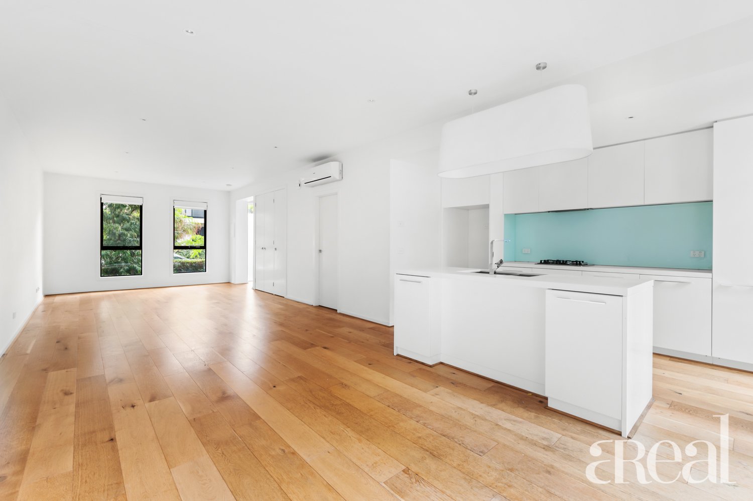 The kitchen is the perfect blend of functionality and sleek minimalist design with stainless steel appliances, a striking backsplash and all-white cabinets and benchtops. The floating floors contrast perfectly against the crisp white of the walls plus there's split system reverse cycle air-conditioning, a half bathroom, built-in storage and a laundry.