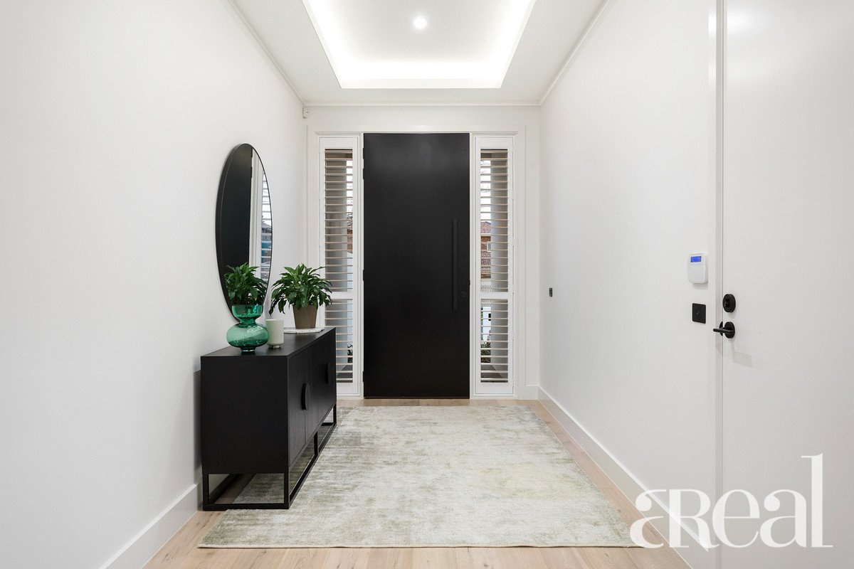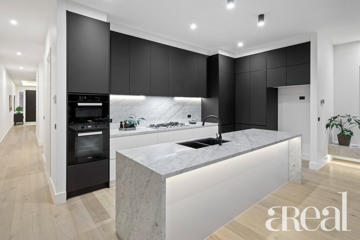 Immediately indulged by its soaring 3m high approx ceilings and luxurious interior detail, European oak timber floors escort you to an elegant formal living setting. Connecting with an expansive, north-facing, open plan kitchen family/dining zone, impeccably equipped with the latest Miele appliances incl electric oven, built-in microwave oven, gas cooktop, integrated dishwasher, waterfall Carrara marble island benchtop and splashback plus streamlined 2-pac, soft-close cabinetry offset by stunning under-bench/cabinet lighting. Progressing to a large fully equipped butler's pantry ideal for catering for all-scale gatherings. An integrated gas fire in this casual entertaining zone creates intimate winter warmth. Stacker doors merge effortlessly with a secluded Bluestone paved alfresco, offering maximum entertainment value and minimal maintenance, superbly landscaped for BBQs, celebrations and weekend relaxation.