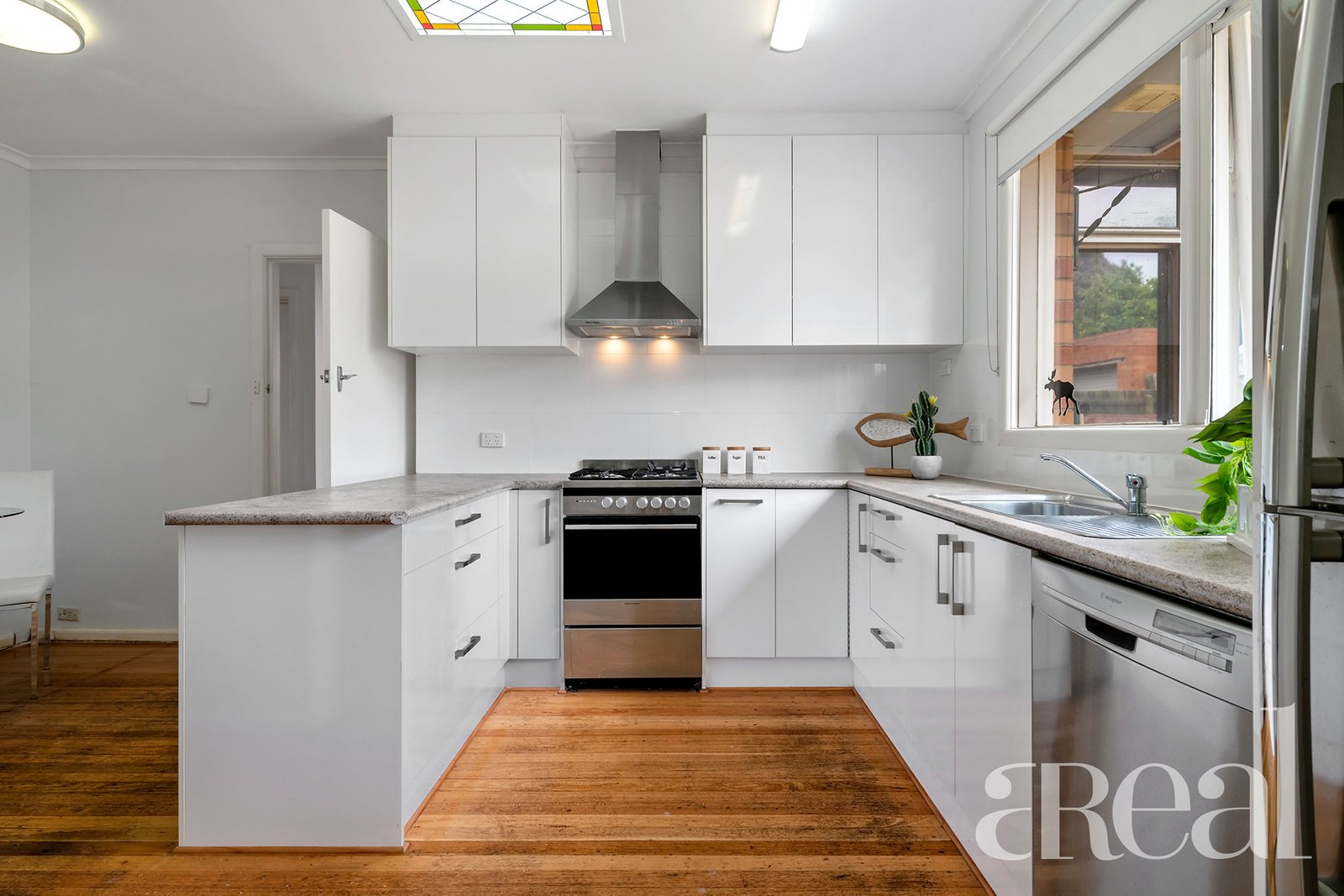 Daily life is sure to revolve around the light-filled lounge and dining room with a gas fire, elegant built-in cabinetry and double doors that open out to the covered front porch. Gleaming timber floors flow underfoot while the kitchen embraces the meals area and boasts gas cooking and plenty of storage.