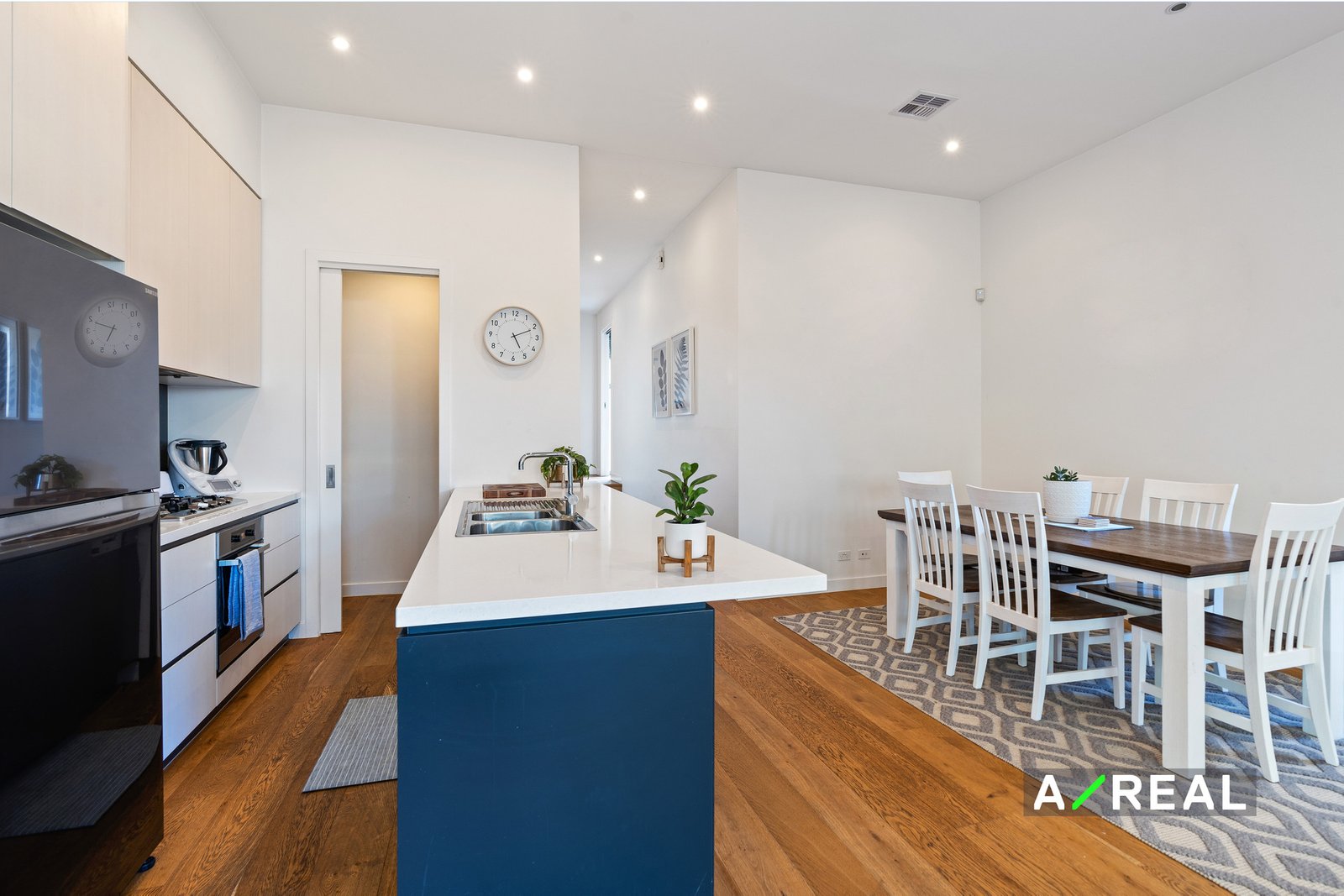 The split-level main floor features on-trend flooring, tall ceilings and crisp white walls. An open study is set just off the entry while at the rear of the layout you will find a light-filled and spacious kitchen, dining and living room. A suite of stainless steel appliances are on hand to make cooking a joy plus there's a breakfast bar for casual meals, sweeping benchtops and plenty of storage including a walk-in pantry.