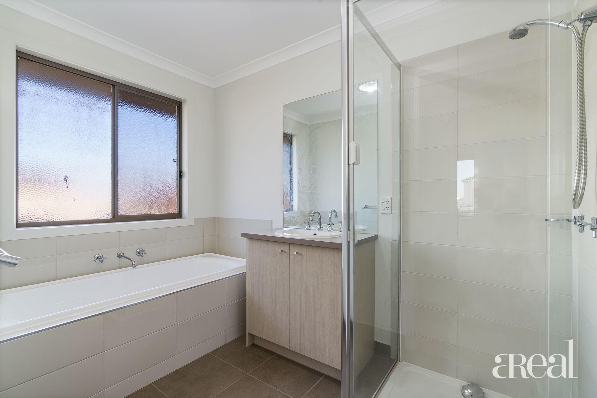 Bedroom four is set on the main floor, with a built-in robe, along with a double garage and the laundry.