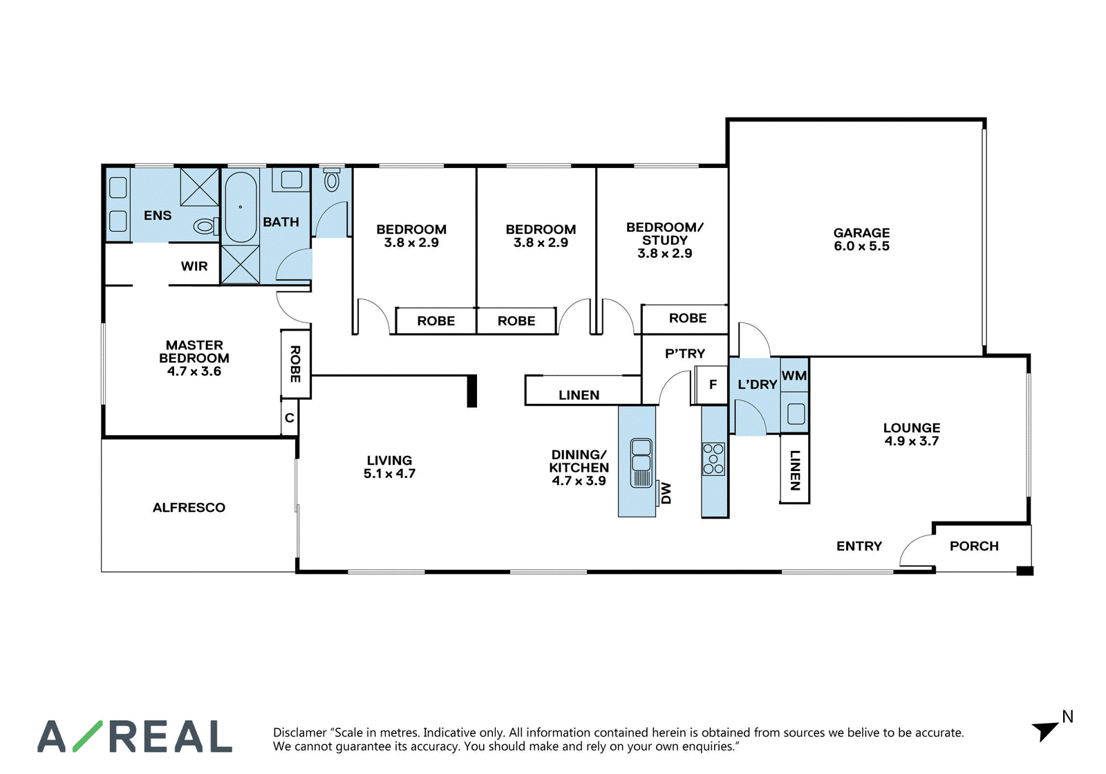 The three guest bedrooms are set in their own section of the floorplan along with the main bathroom and separate laundry. Built-in robes offer ample storage while your master is separated and enjoys a walk-in robe and an ensuite with a double vanity.