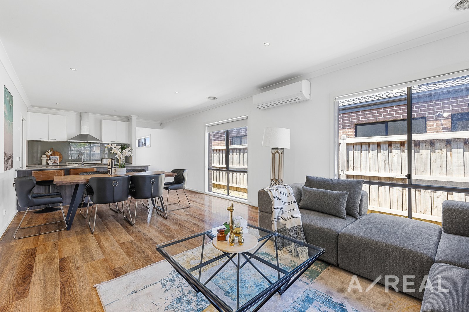 An abundance of natural light floods the open-plan kitchen and dining room which flows freely into the large family zone. A suite of quality appliances and sweeping benchtops will delight the eager cook with a large centre island, a tiled backsplash and a walk-in pantry sure to tick all the boxes.