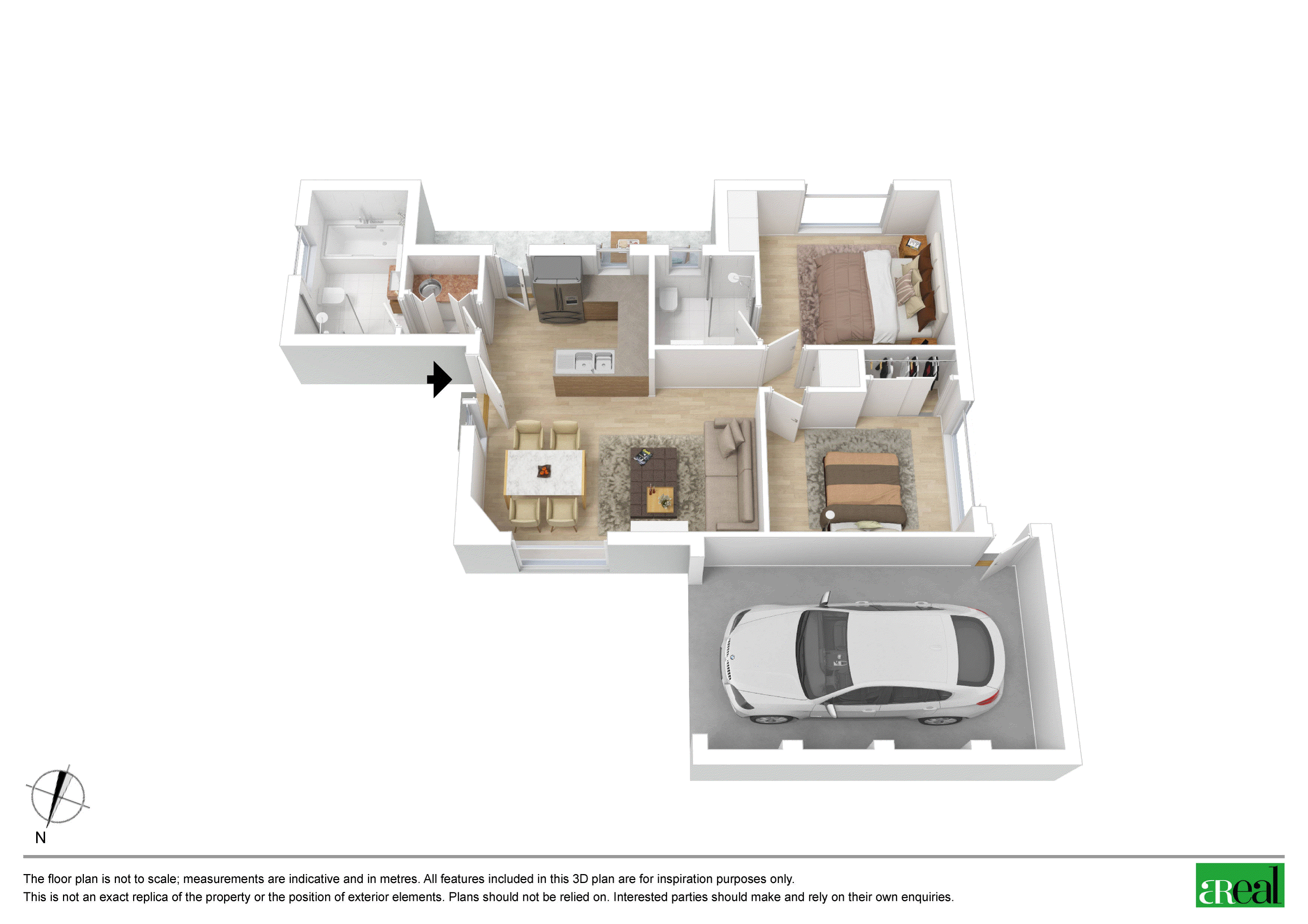 The two bedrooms are both a great size with built-in robes. The master bedroom enjoys access to an ensuite while a central bathroom with a bath is located next to the kitchen and the space-saving laundry nook. A single garage completes the layout while air-conditioning, tile flooring and a neutral colour palette add to the appeal.