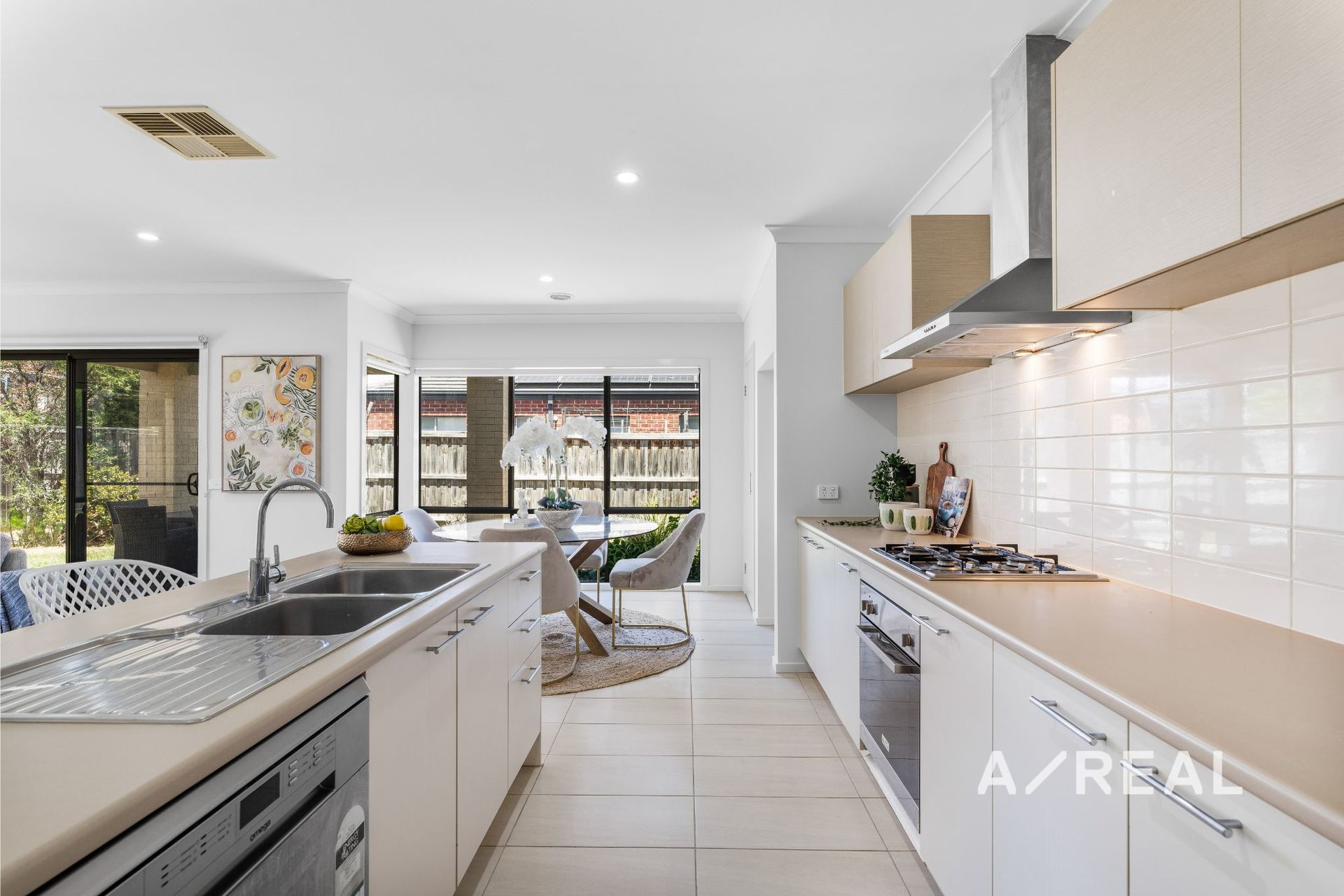 Beautifully staged over a magnificent single-level layout, bespoke interiors are gloriously light-filled and enhance dual-zoned spaces, including a bright family room and open-plan living/dining area served by a modern kitchen featuring stainless steel appliances.