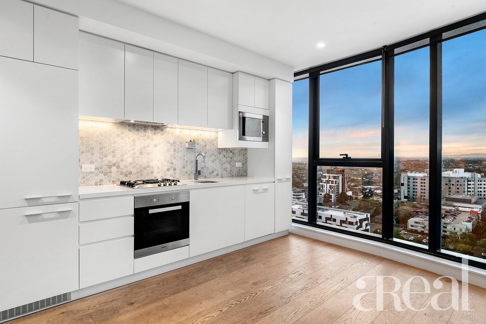 Set right in the heart of the eclectic Box Hill is this ultra-stylish, sleek and modern two-bedroom, two-bathroom apartment. Walls of glass draw natural light into the open-plan layout and create a dramatic welcome that also perfectly frames the elevated outlook over the surrounding area.