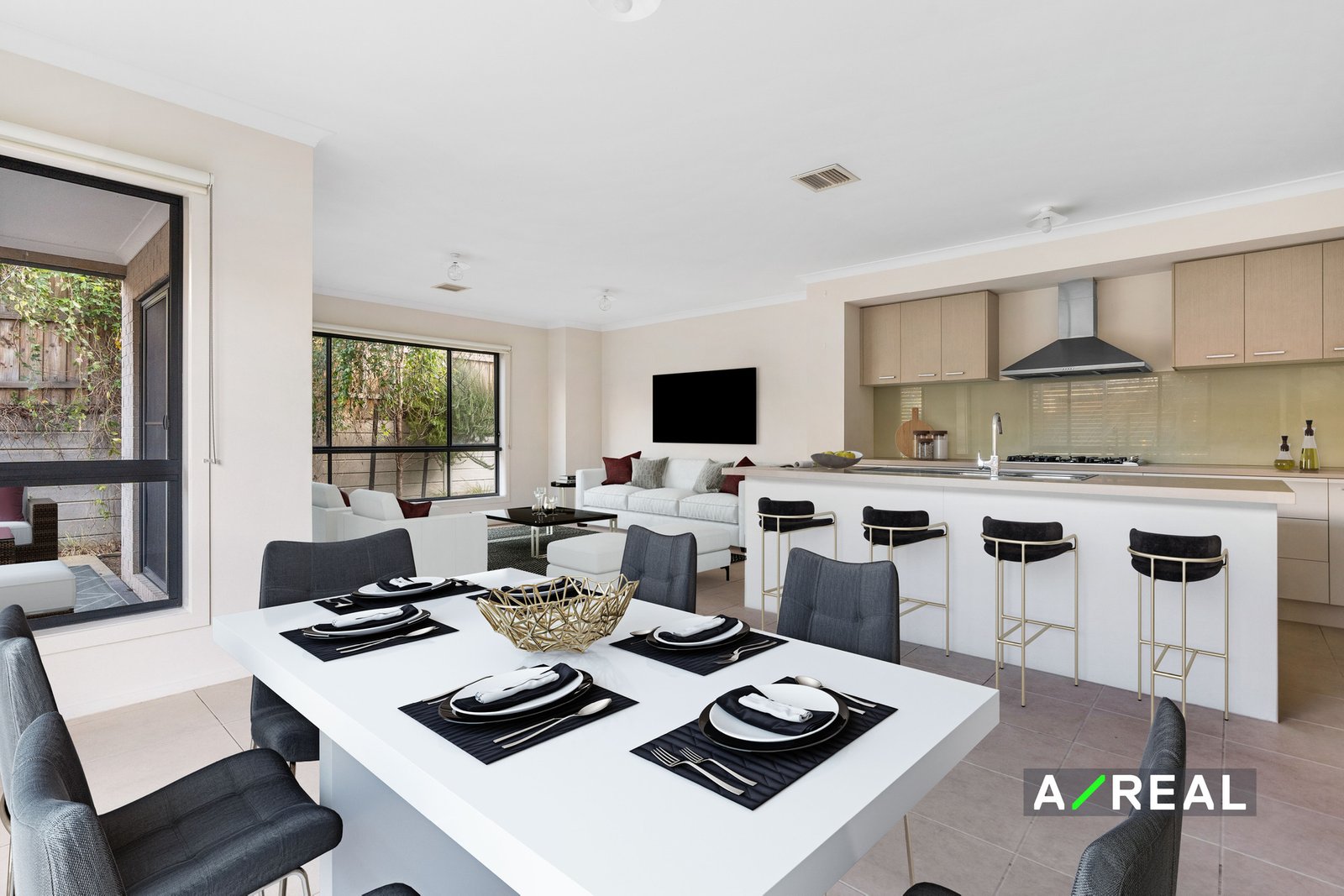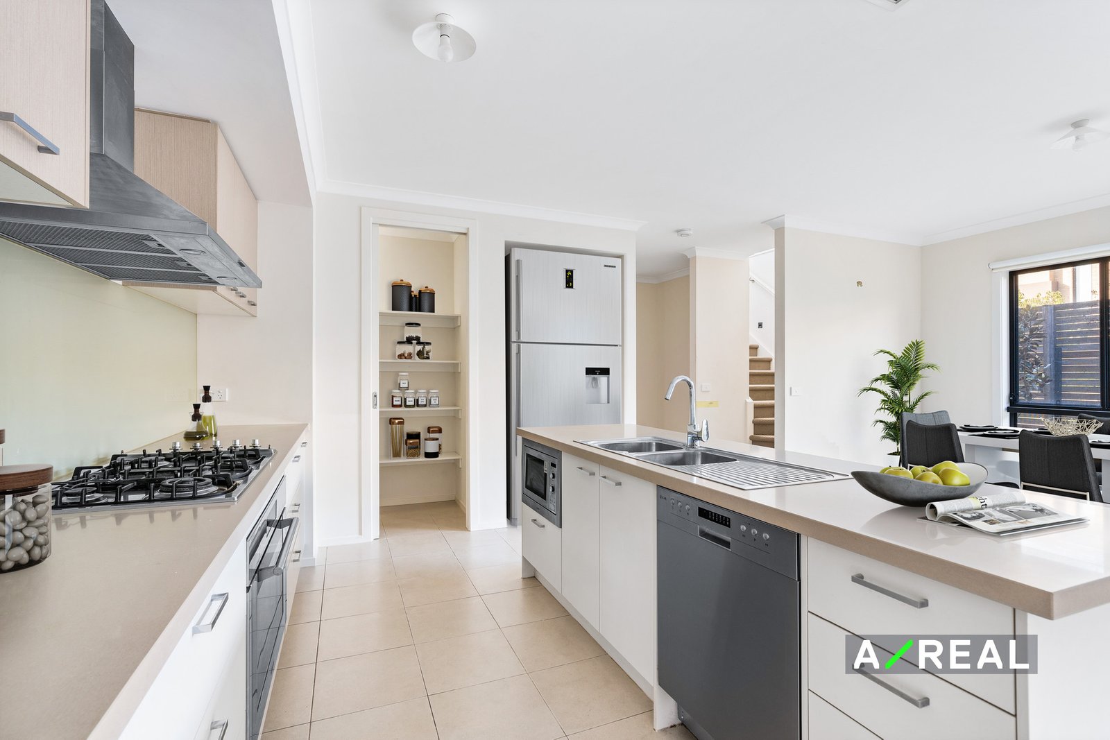 Set on a corner block, the modern interior has a spacious tiled open-plan living area that is drenched in light flowing through large windows. You'll love the kitchen with stone benchtops, a breakfast bar, loads of cupboard space and a pantry, plus gas cooking and stainless-steel appliances. The main living area is extended by a covered alfresco dining area making the perfect for entertaining guests and enjoying the outdoors. There's also a powder room on the main level for convenience.