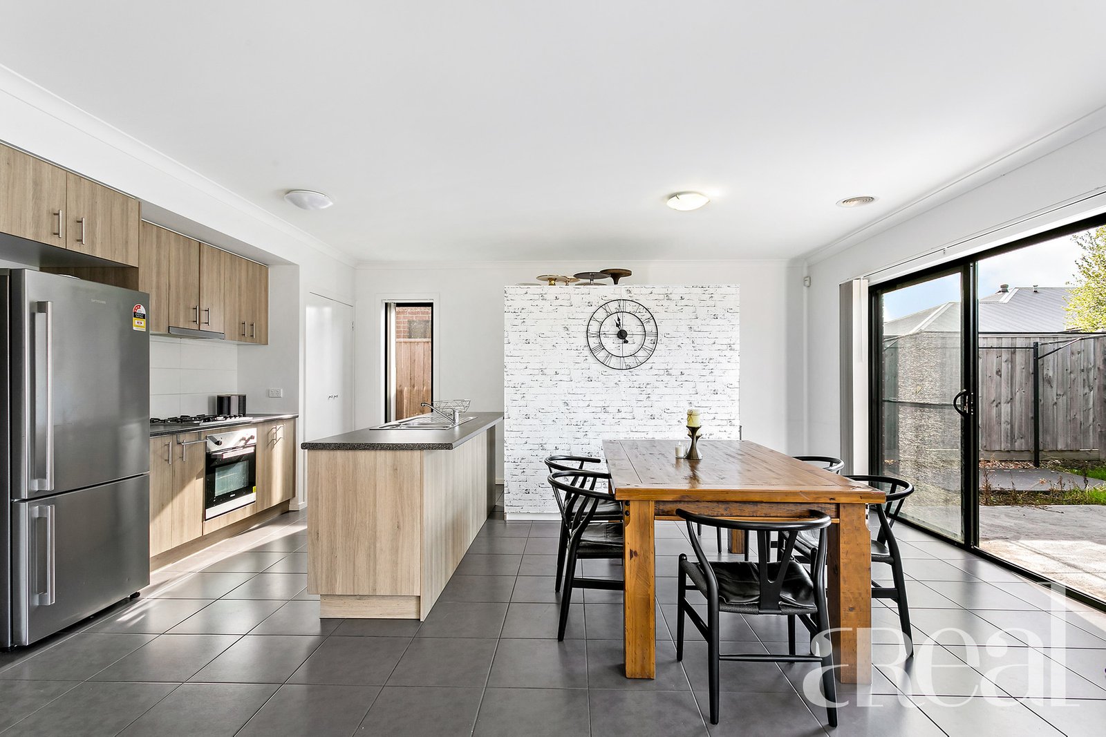 At the end of the central hallway is the open-plan kitchen, dining and living room with split system air-conditioning for year-round comfort.