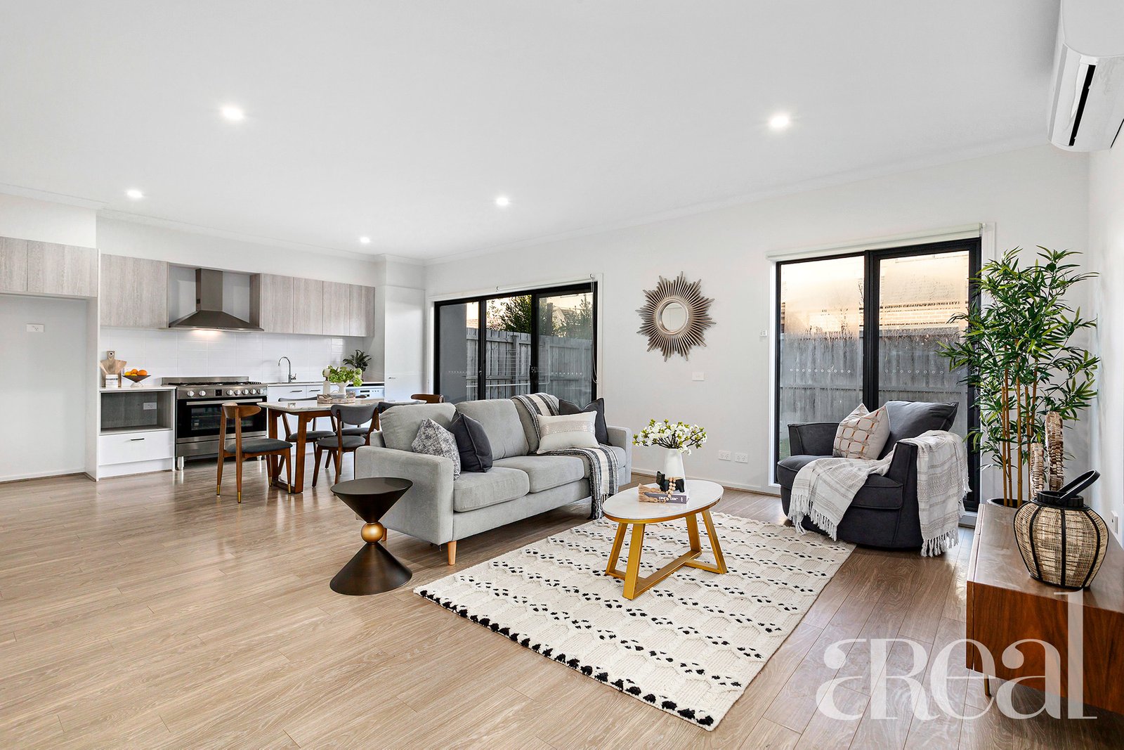 • High ceilings, stainless steel appliances, stone benchtops, large showers, timber style flooring, LED downlights, two reverse cycle air conditioners and two wall heaters