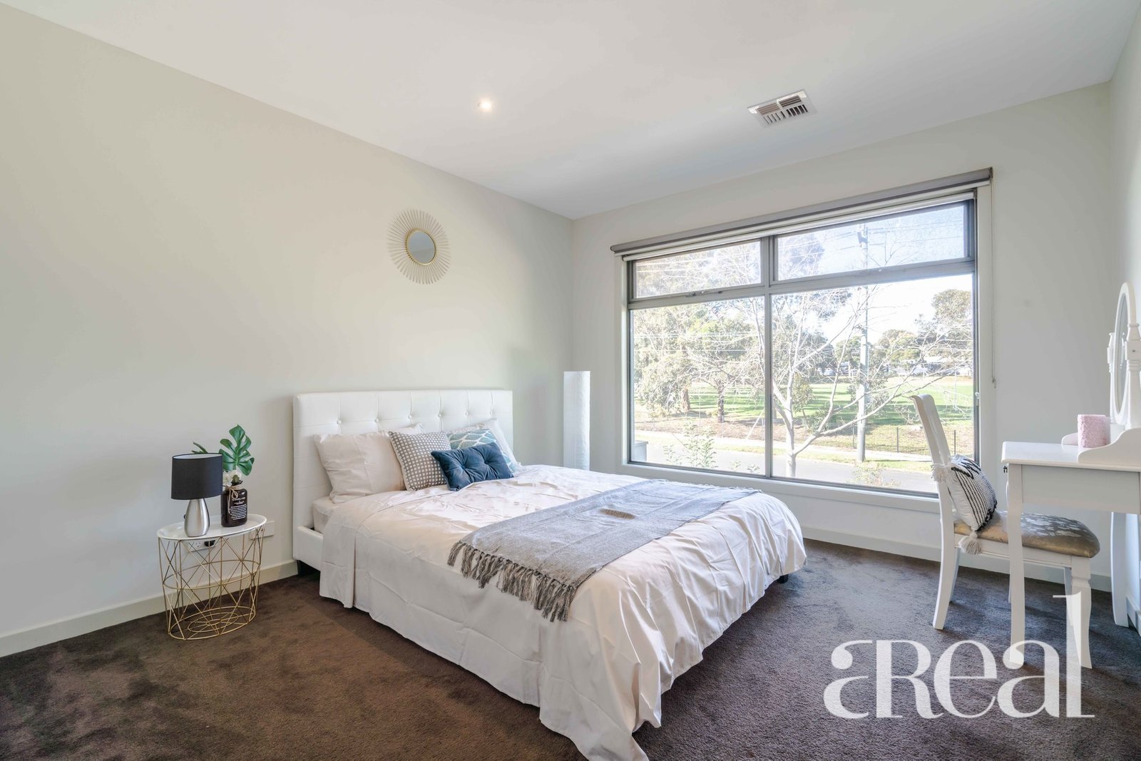 The three bedrooms are set on the first floor including the master with a walk-in robe, an ensuite and an oversized window that frames the lovely outlook. A central main bathroom, with a separate bath, shower and toilet, services the guest bedrooms and there are built-in robes for added convenience.