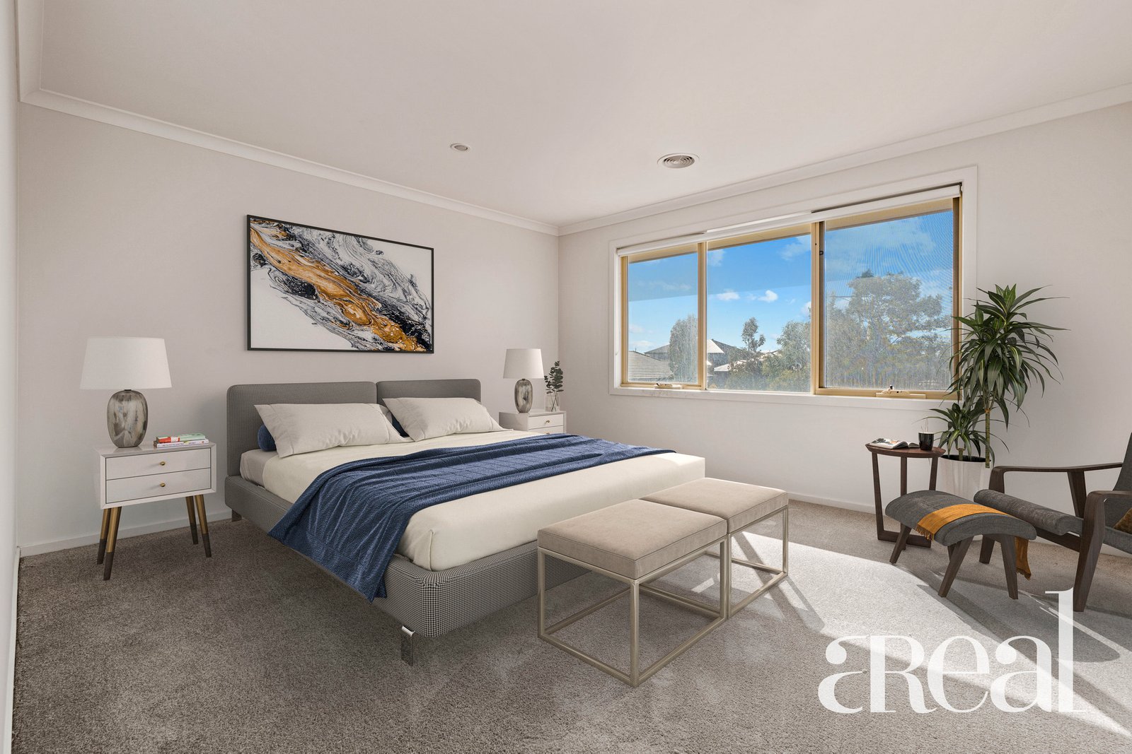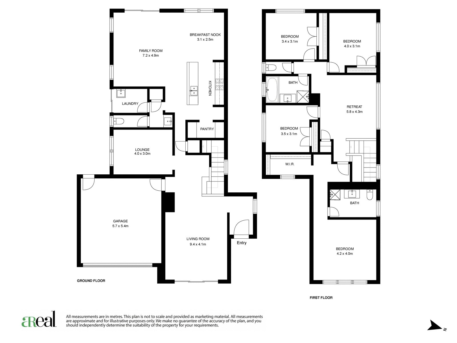 A lounge room and a separate living room are housed on this level while, at the top of the stairs, you will find an open retreat space. Also on the first floor are the four bedrooms including your luxe master with a walk-in robe and a private ensuite. Built-in robes have been added to the guest bedrooms and there's a central main bathroom with a separate bath, shower and toilet.