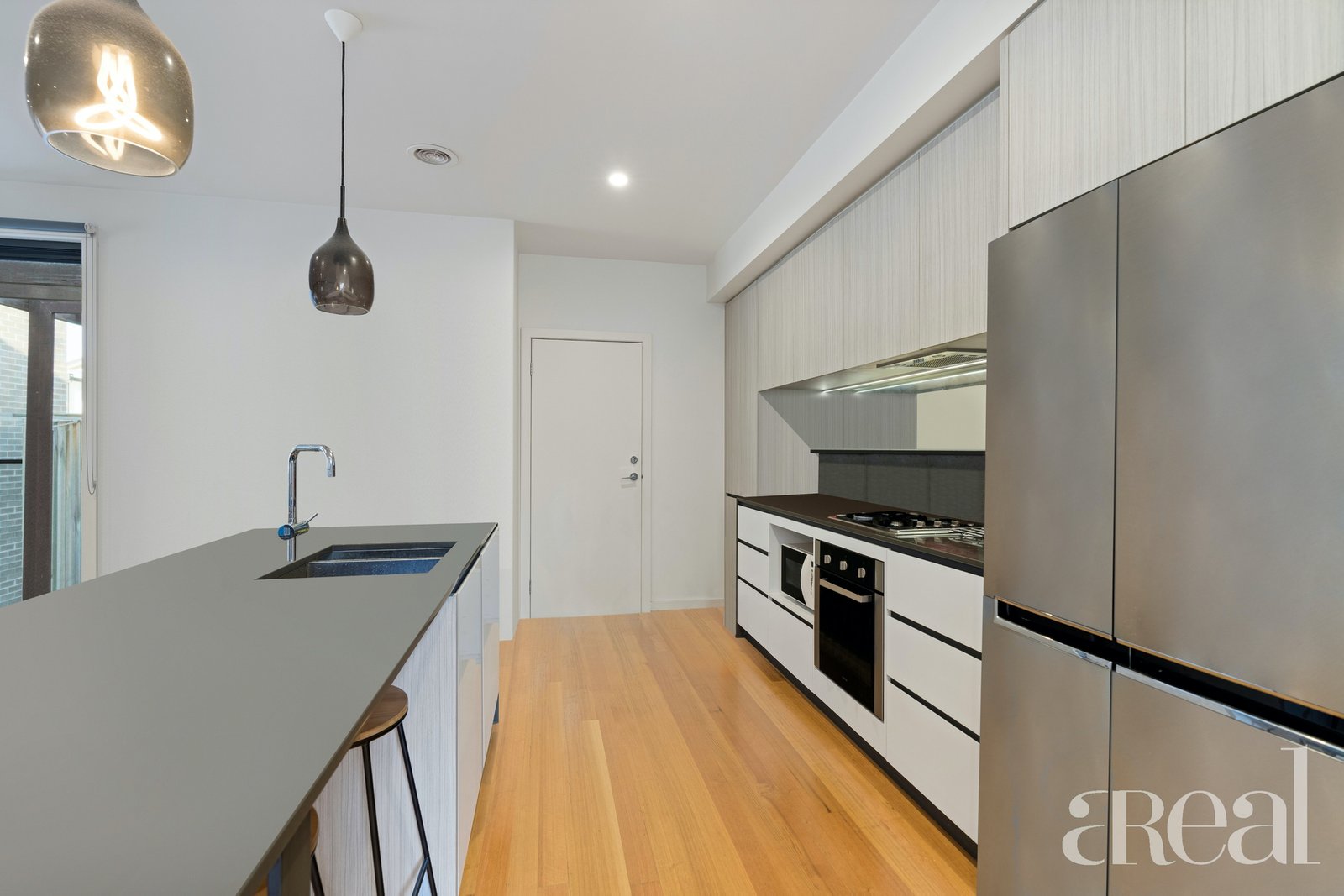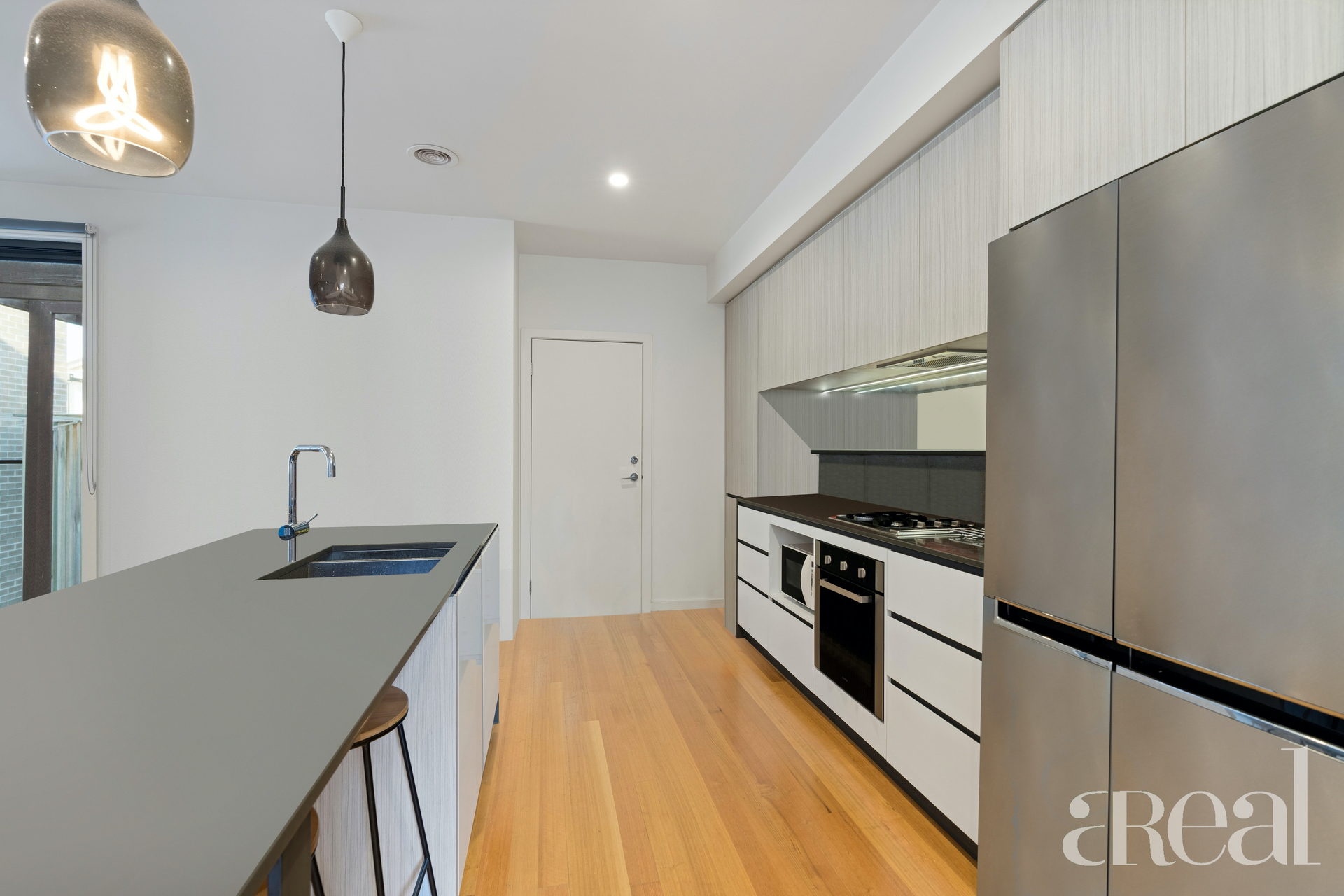You will love to gather with friends in the open-plan and light-filled kitchen, dining and living area with timber floors and split system air-conditioning. Like to show off your culinary skills in the kitchen? Sweeping benchtops and plenty of storage are all yours along with a suite of stainless steel appliances, breakfast bar seating, on-trend pendant lights and quality fixtures.